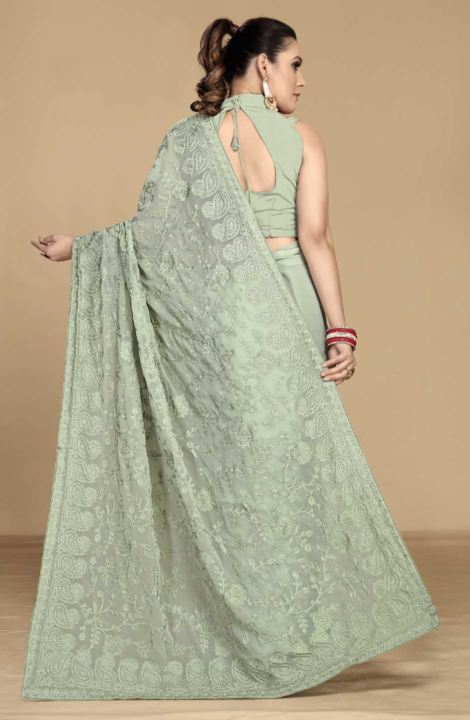 Green color Saree in Georgette fabric with Embroidered, Thread work