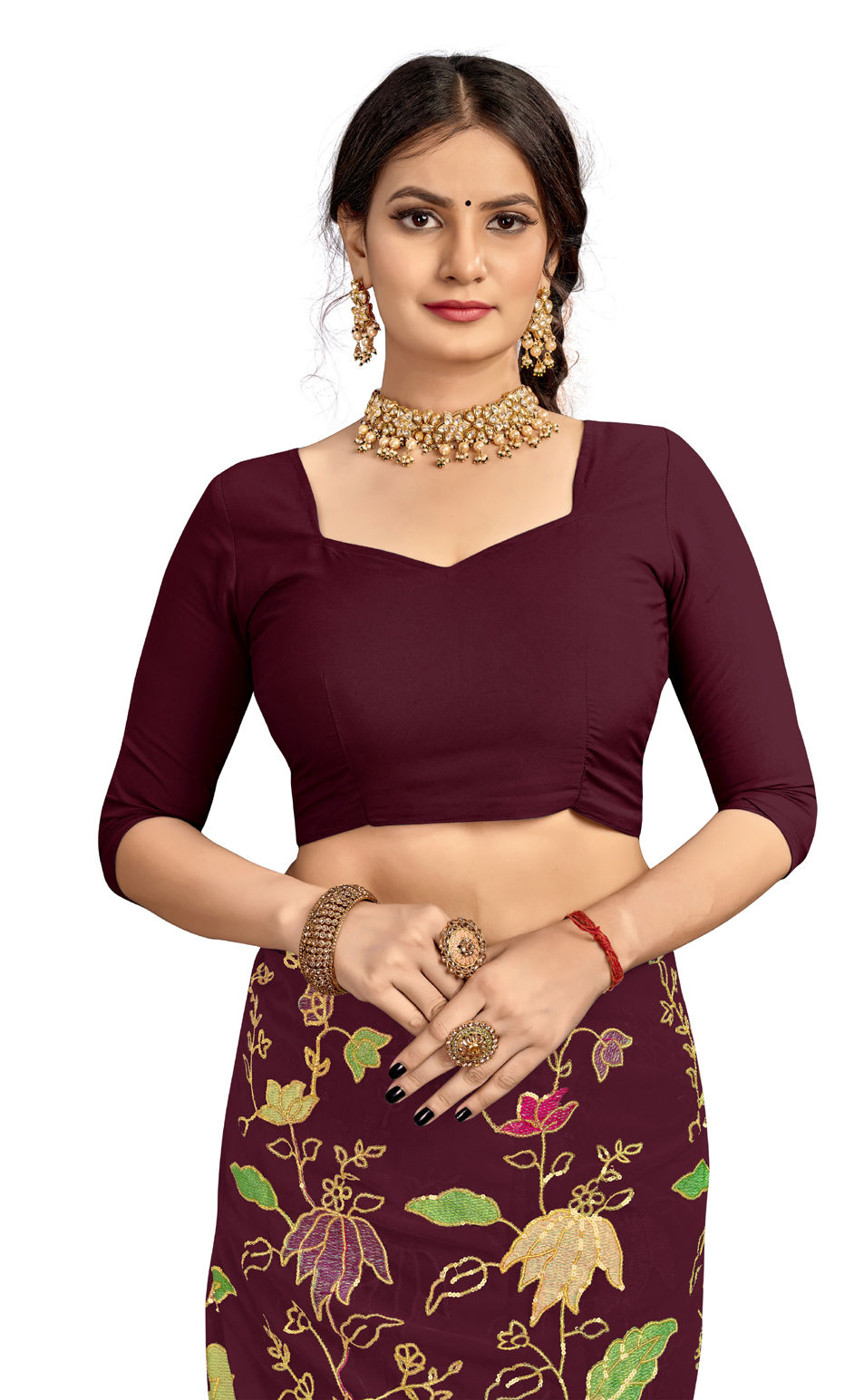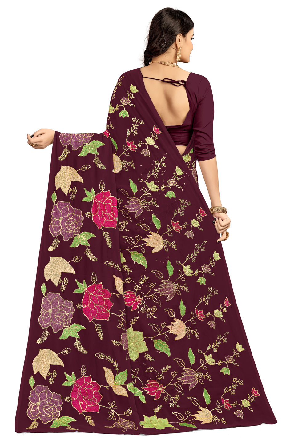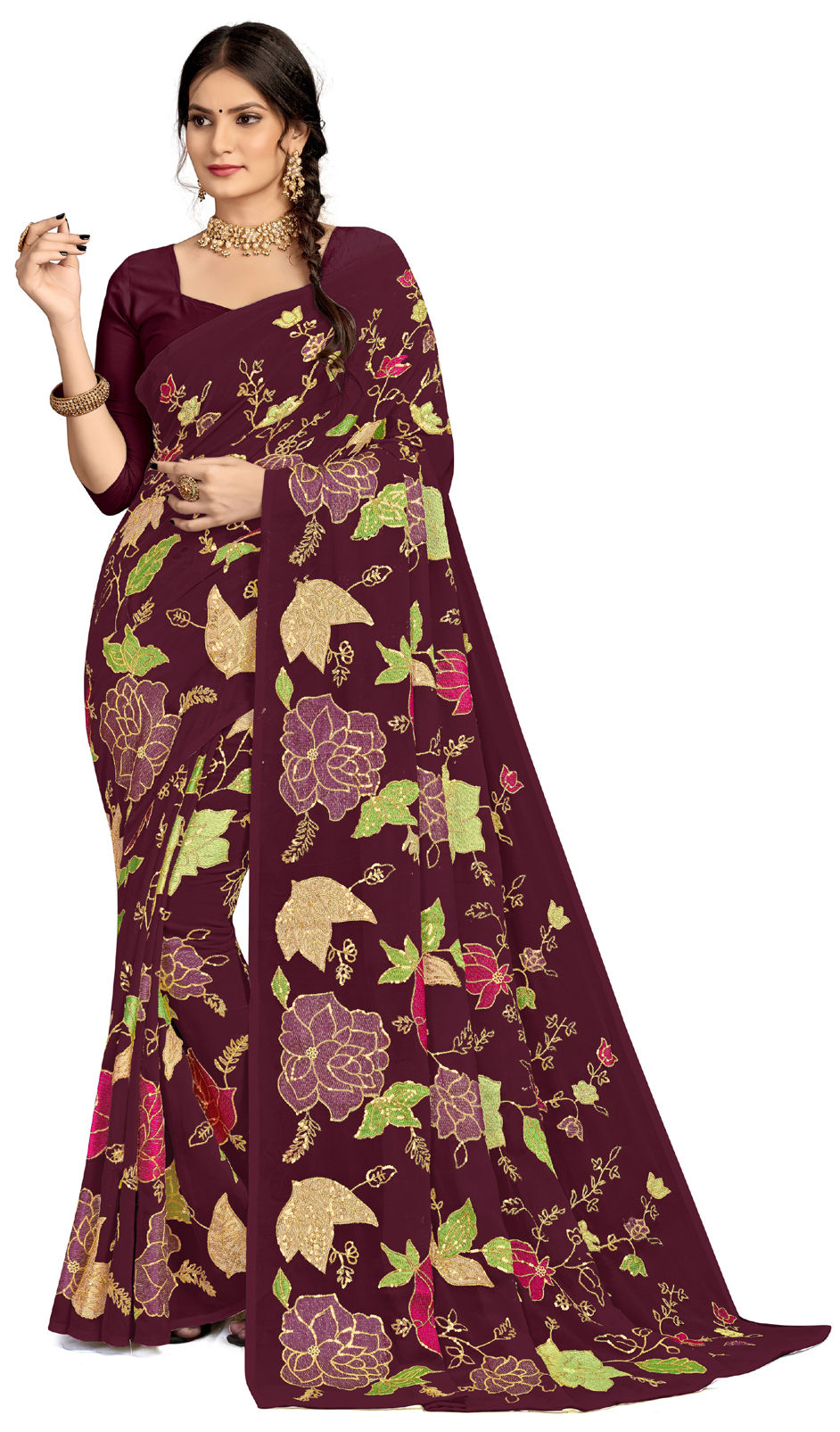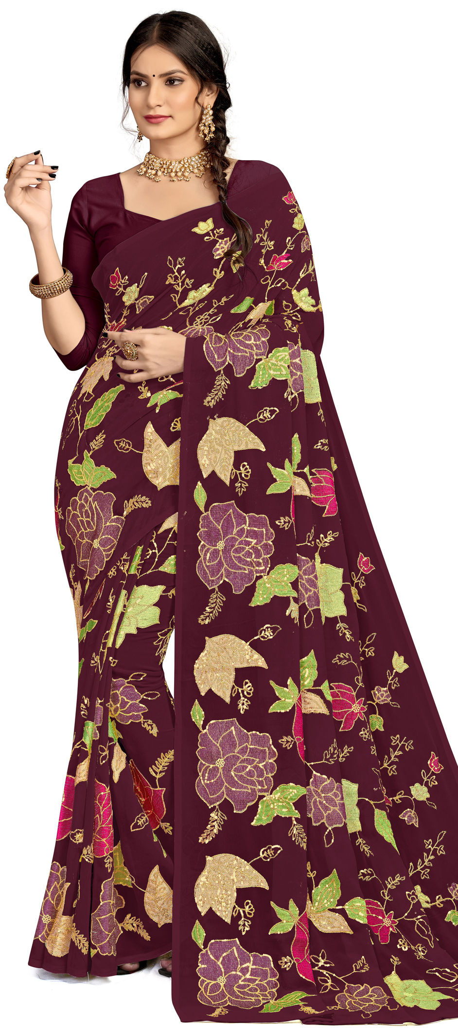 Georgette Party Wear Saree in Red and Maroon with Sequence work