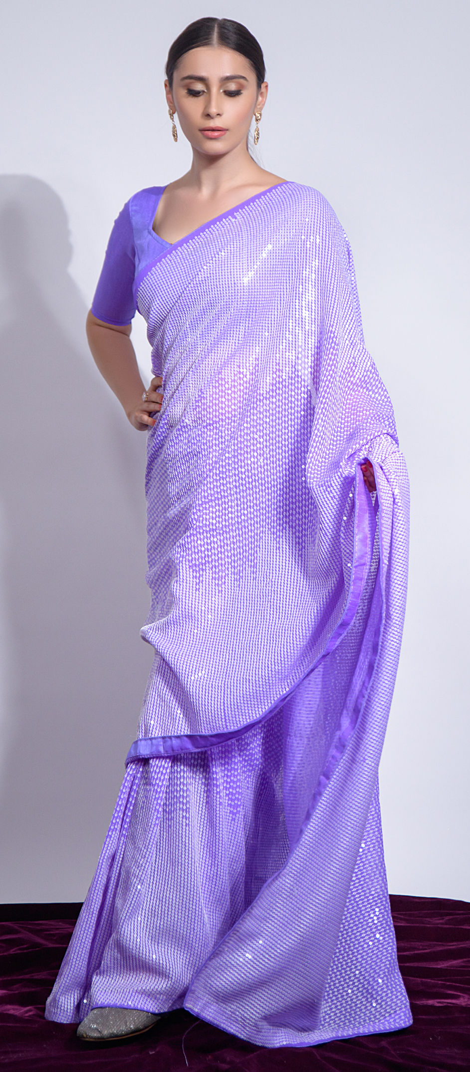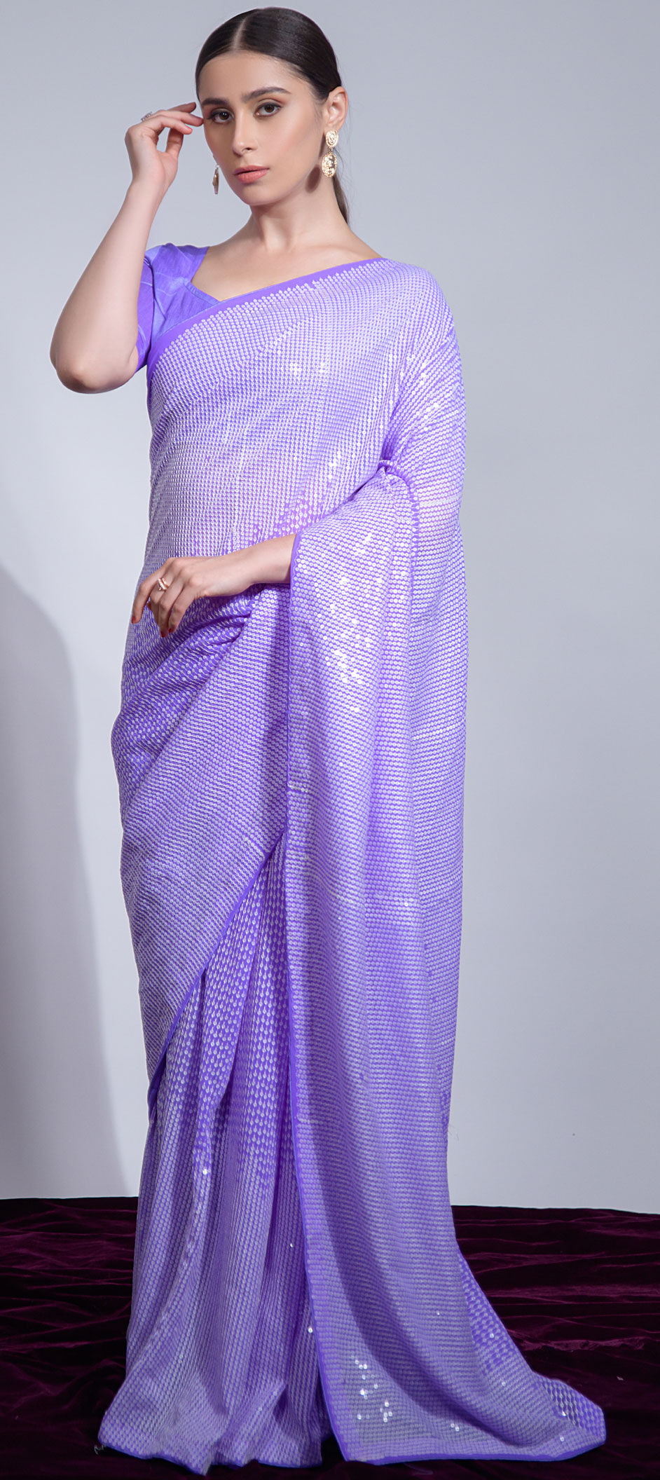 Purple and Violet color Saree in Georgette fabric with Sequence work