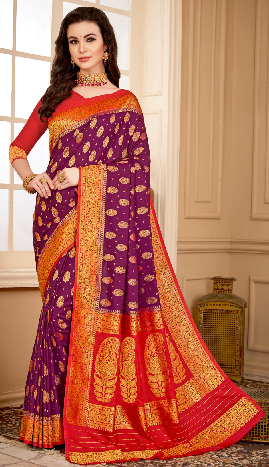 in Purple and Violet with Zari work