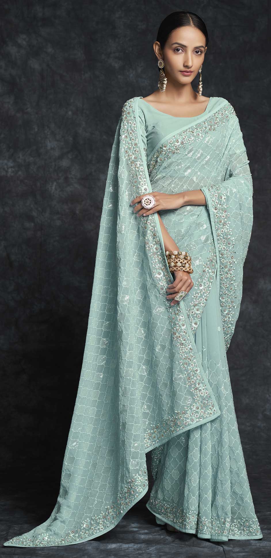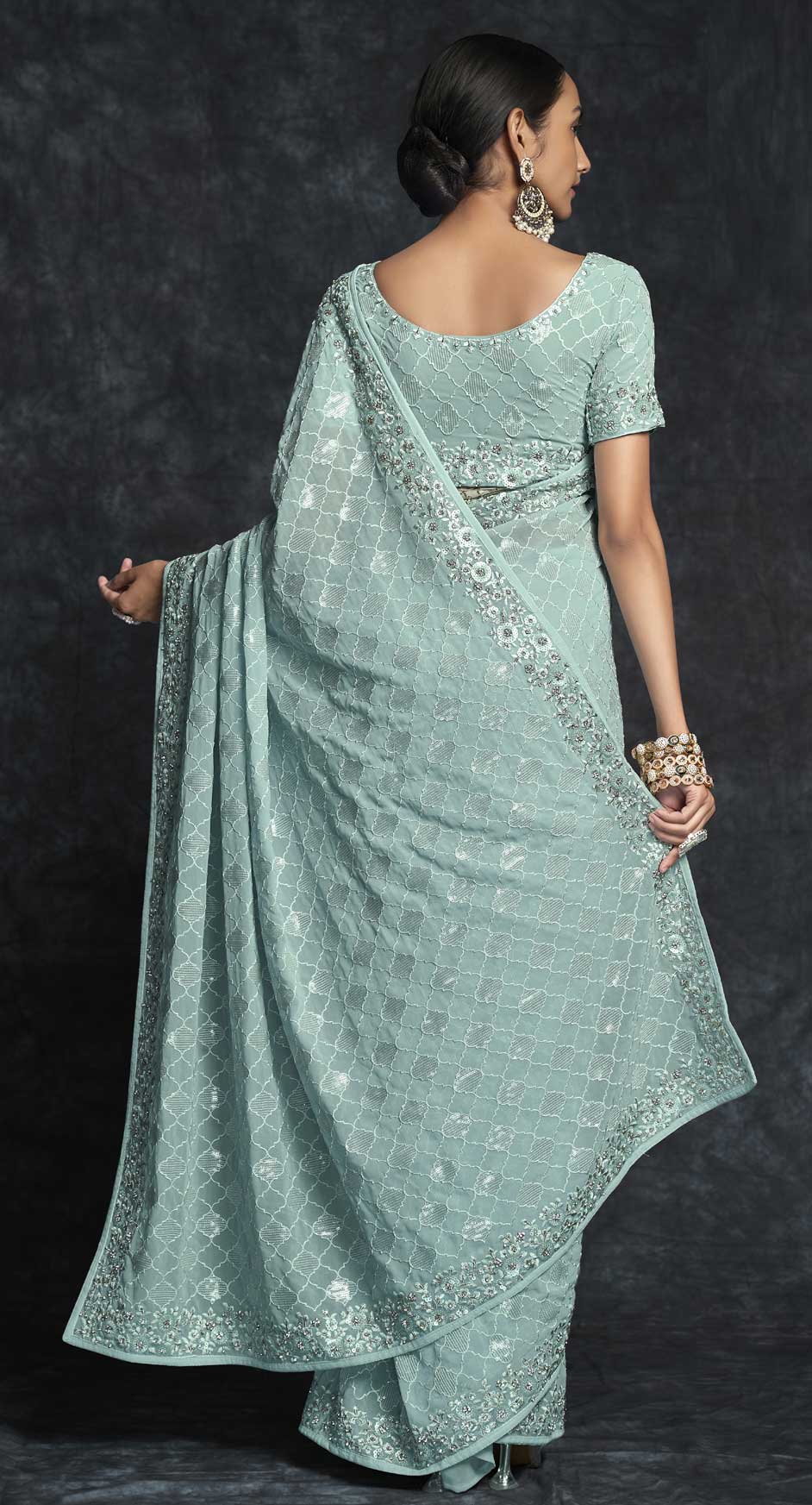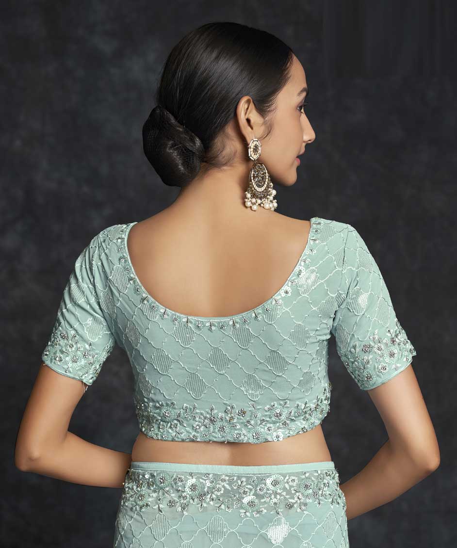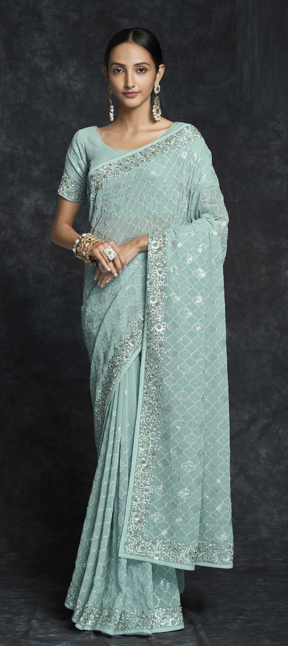 Blue color Saree in Georgette fabric with Embroidered, Sequence, Thread work