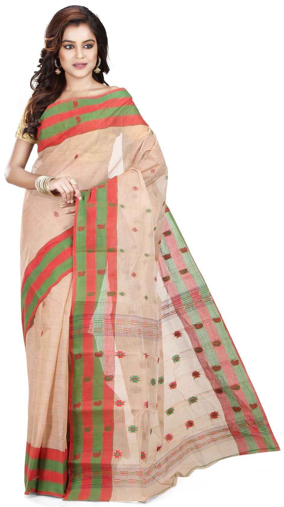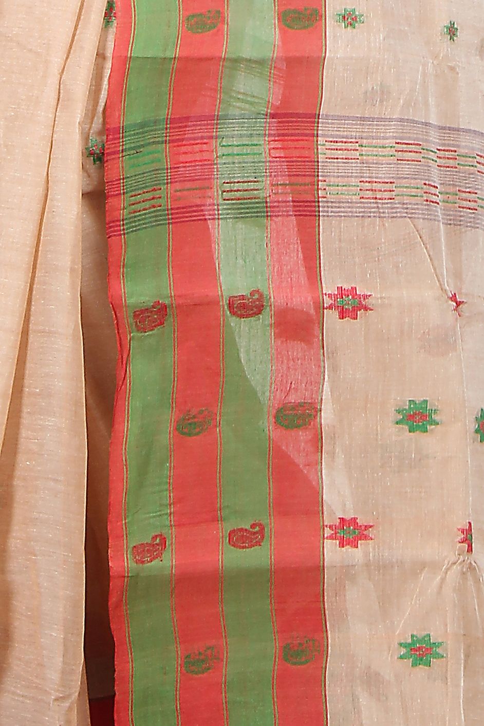 Beige and Brown color Saree in Handloom fabric with Thread work