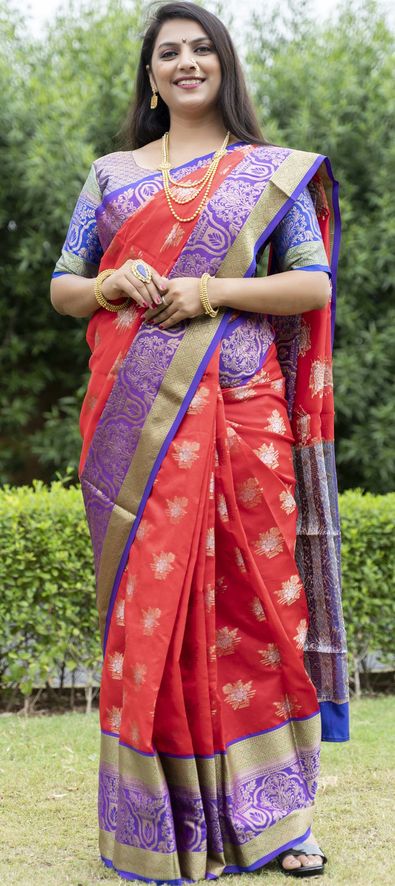 Red and Maroon color Saree in Handloom fabric with Weaving work