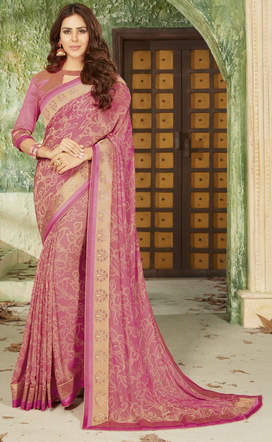 in Pink and Majenta with Printed work