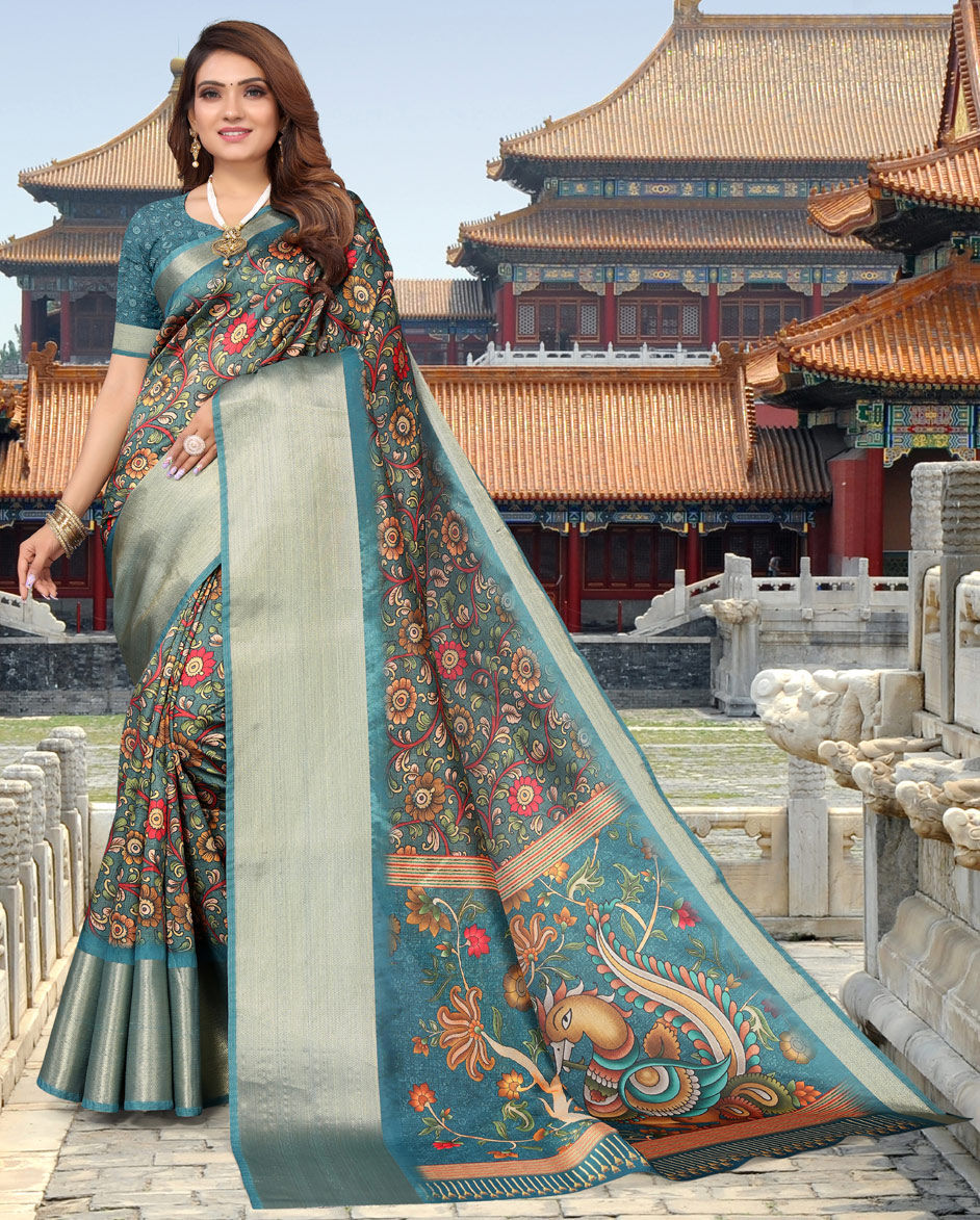 Blue color Saree in Jacquard fabric with Printed, Weaving work
