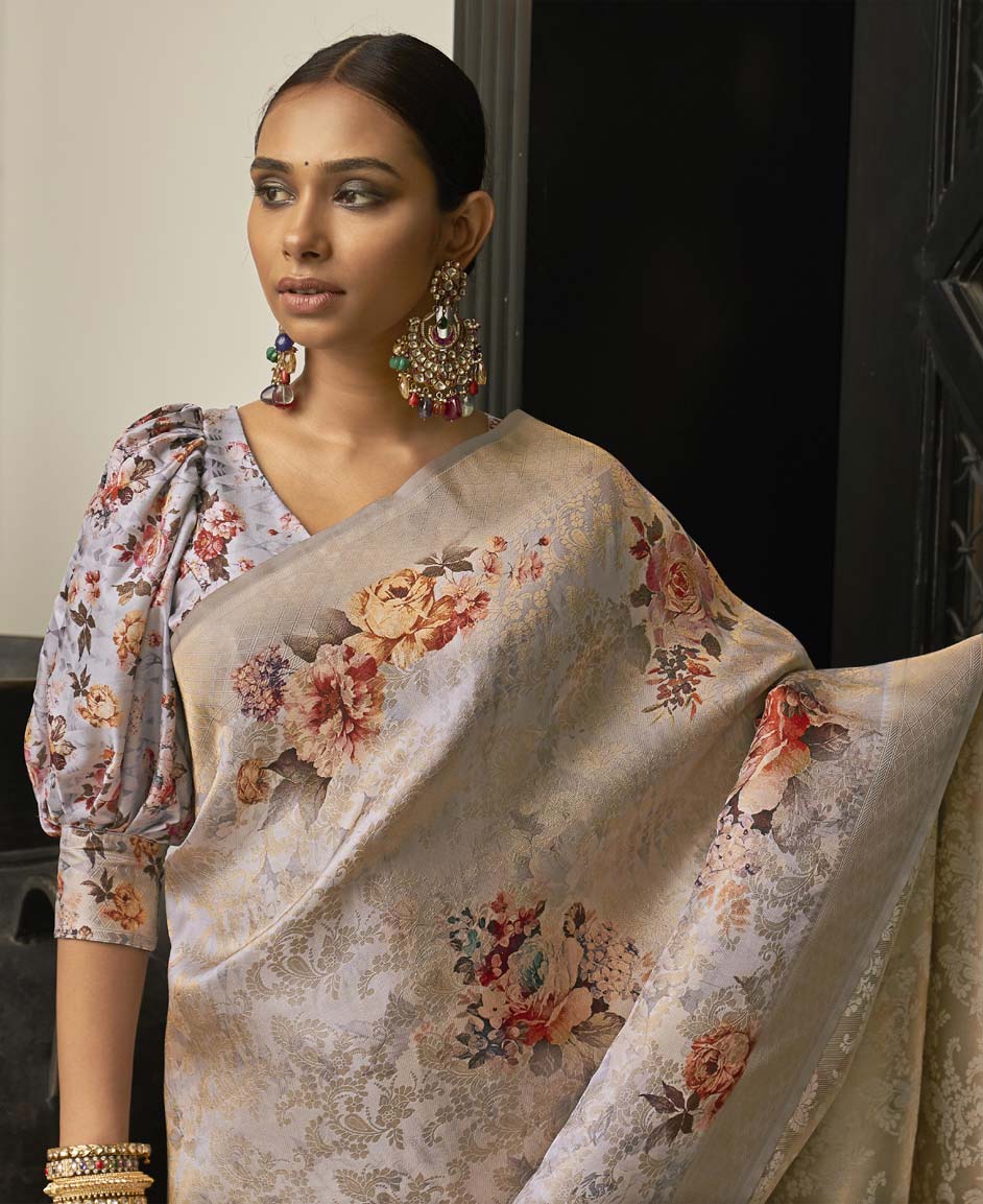 Purple and Violet color Saree in Jacquard fabric with Floral, Weaving work