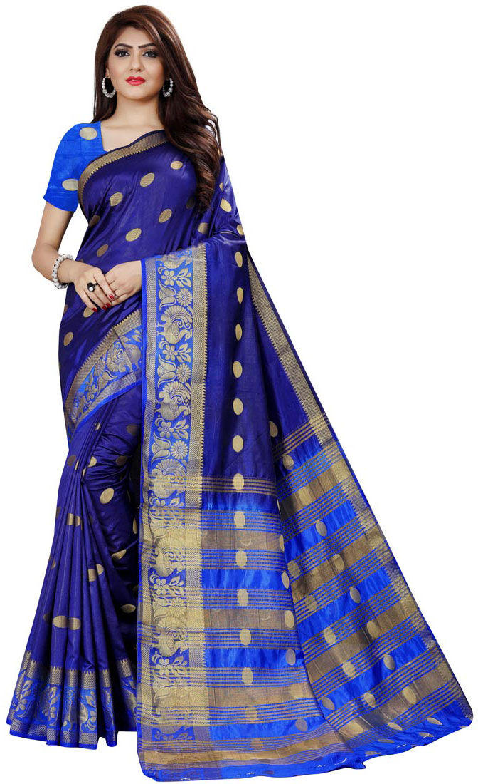 Blue color Saree in Naylon Silk, Silk fabric with Weaving work