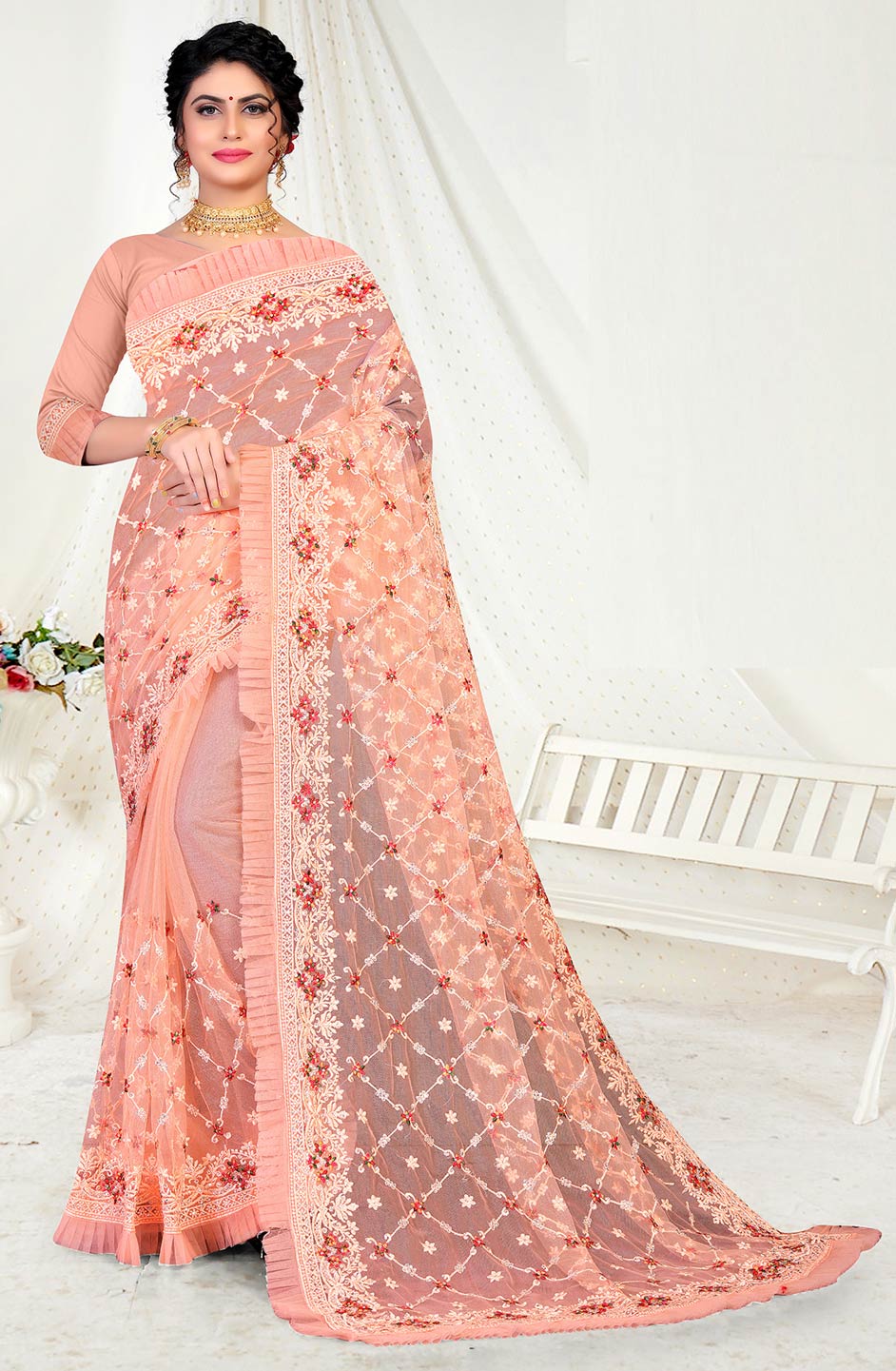 Pink and Majenta color Saree in Net fabric with Embroidered, Thread work