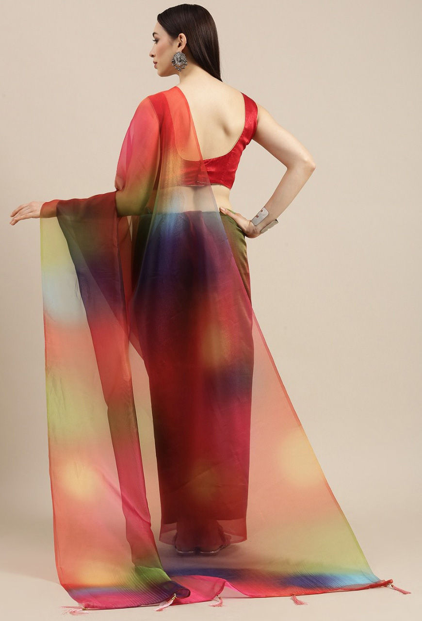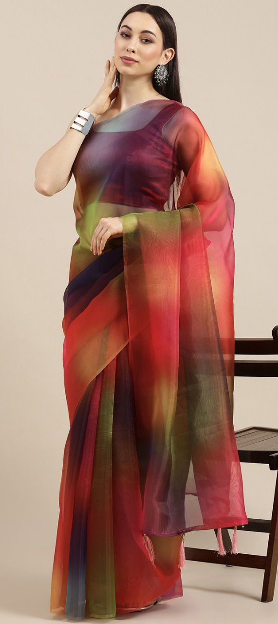 Multicolor color Saree in Organza Silk, Silk fabric with Printed work