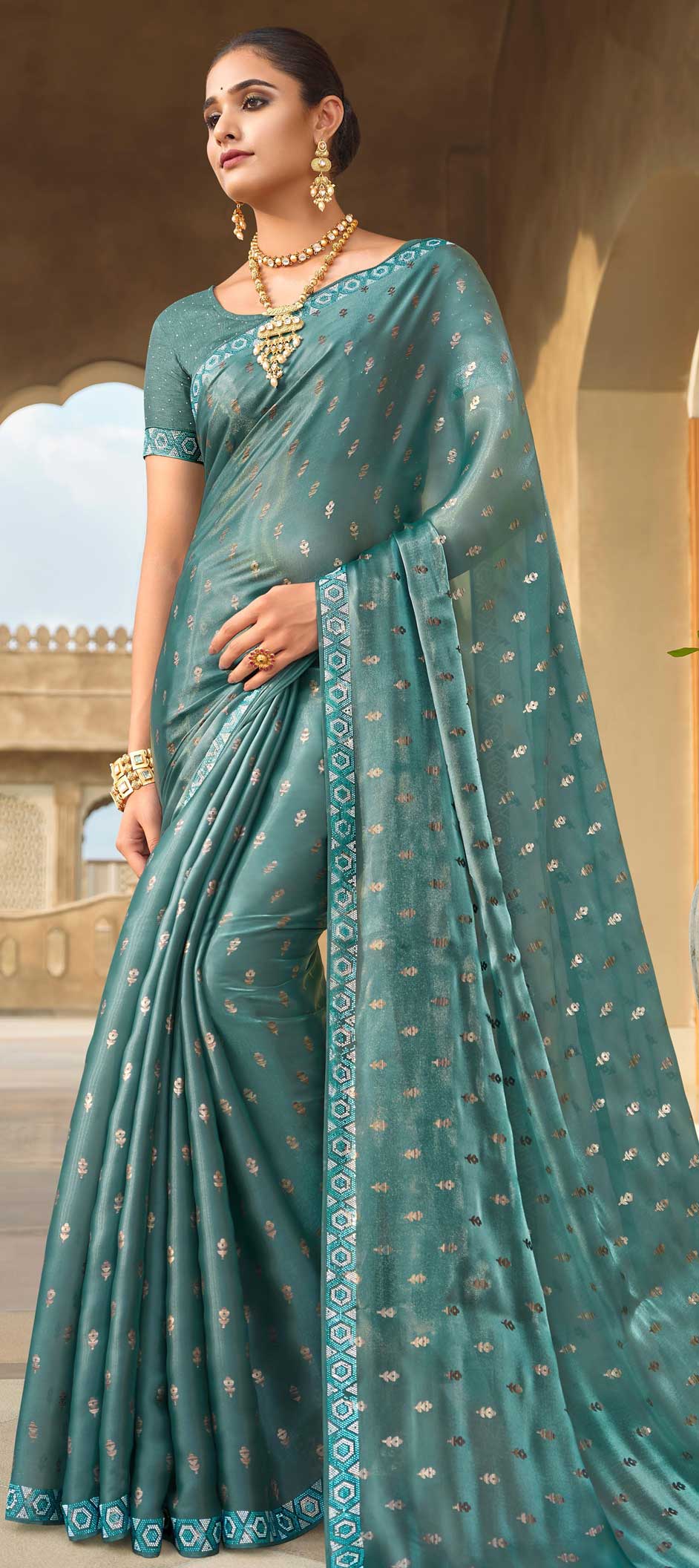 Blue color Saree in Organza Silk fabric with Embroidered work