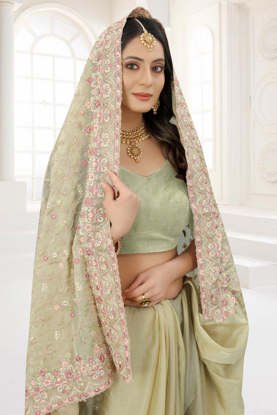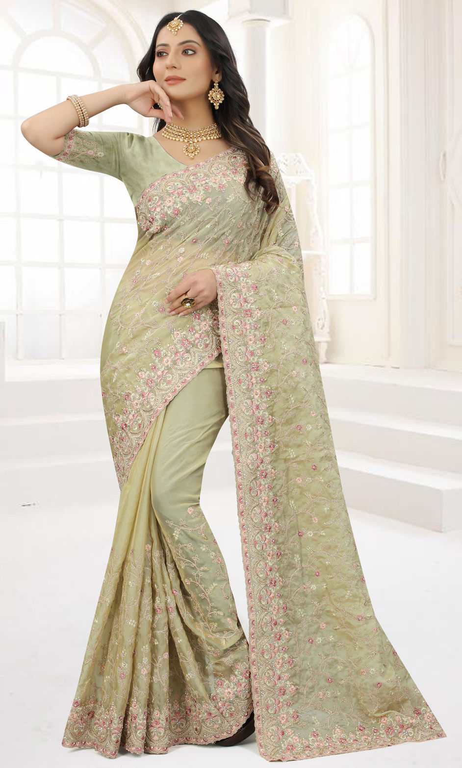 in Green with Embroidered work