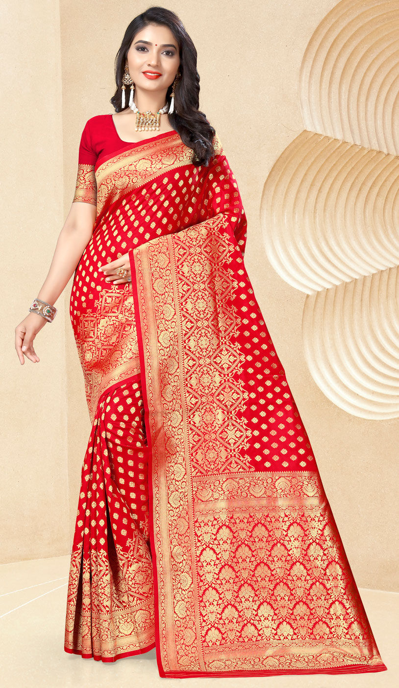 Red and Maroon color Saree in Poly Silk, Silk fabric with Weaving work