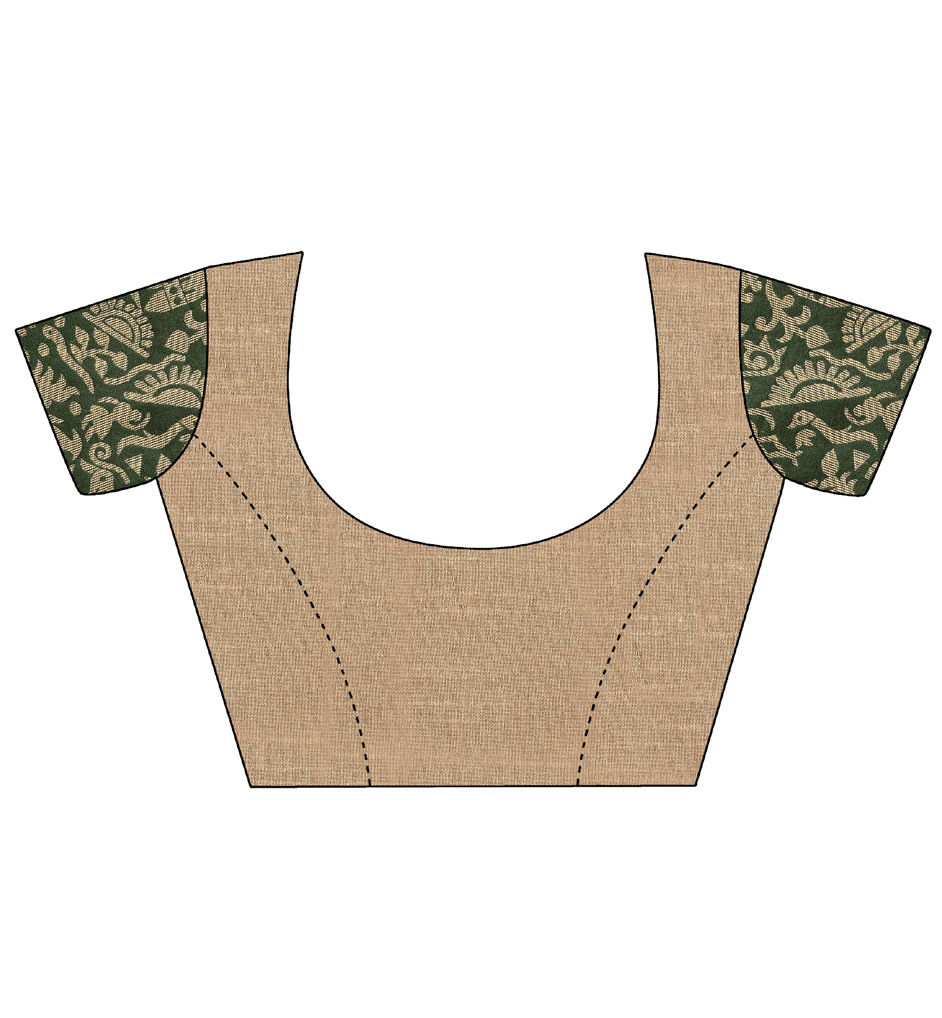 Green color Saree in Raw Silk, Silk fabric with Weaving work