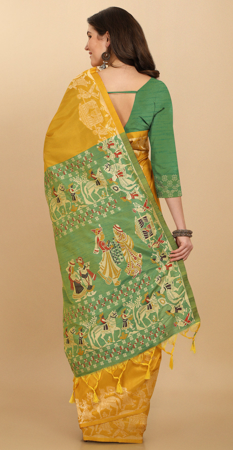 in Yellow with Weaving work