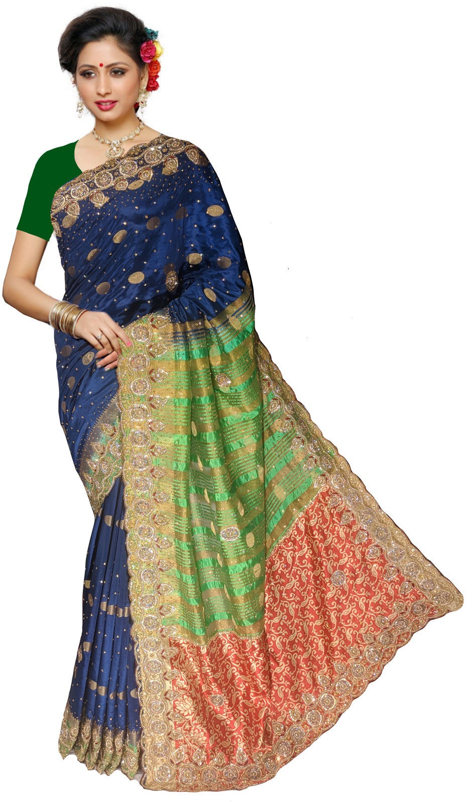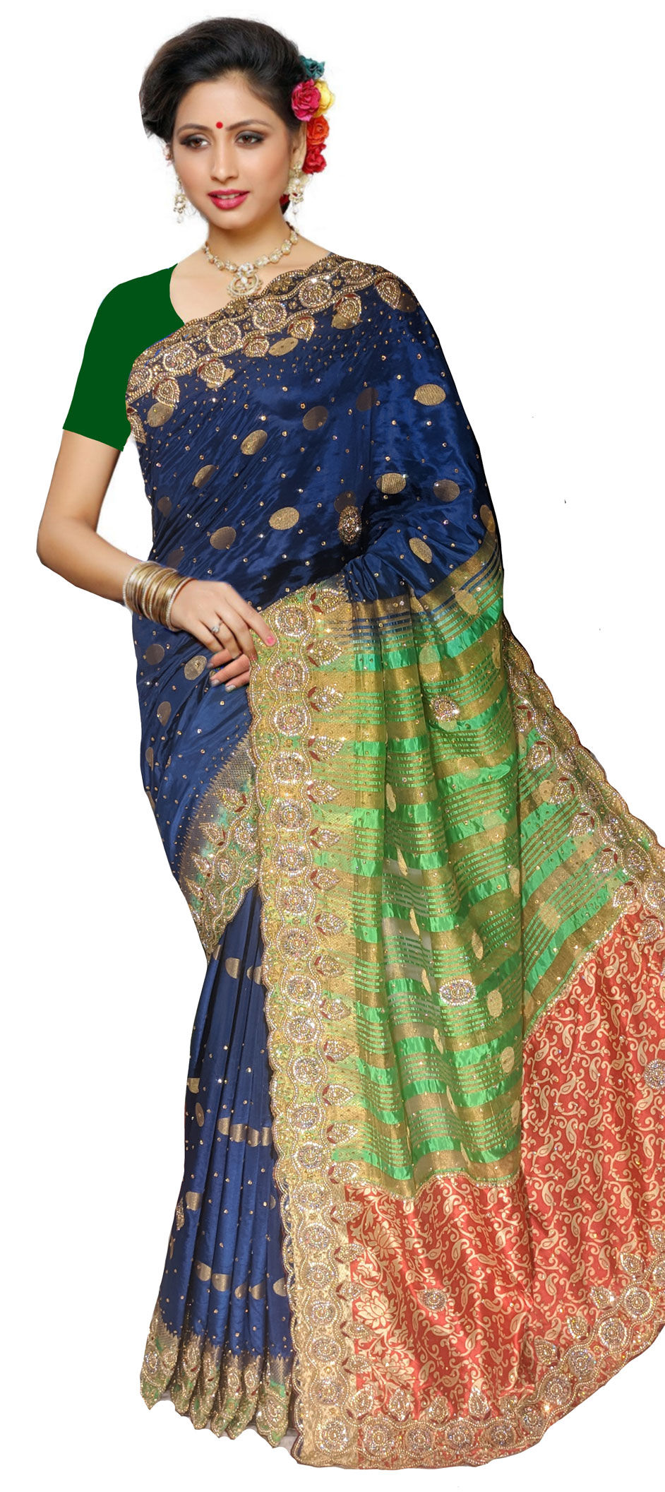 Blue color Saree in Satin Silk, Silk fabric with Embroidered, Stone work
