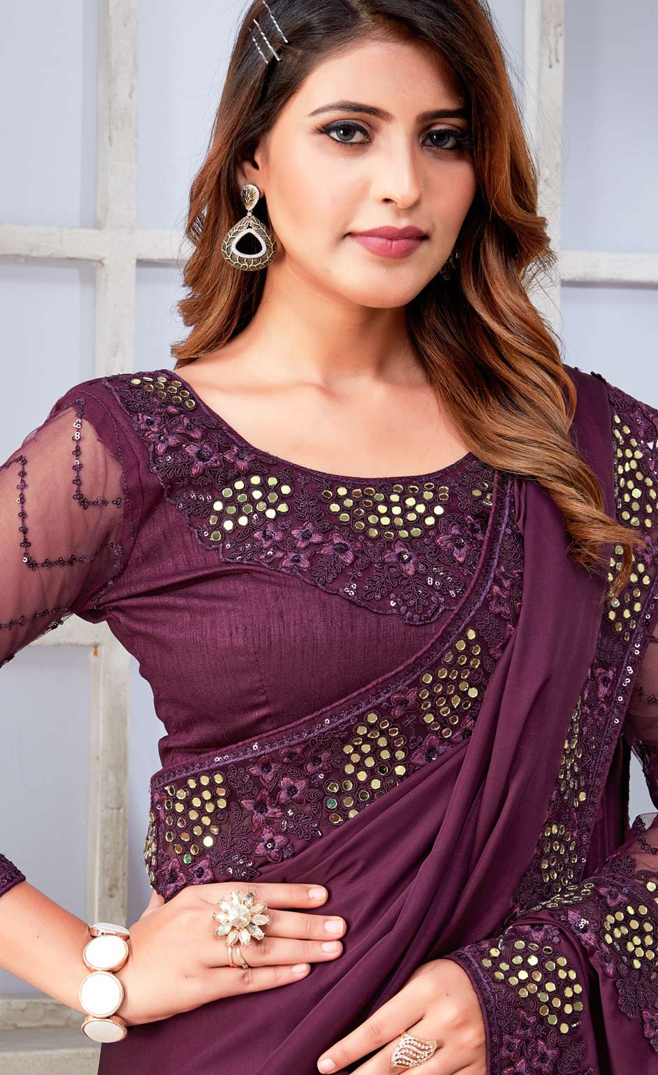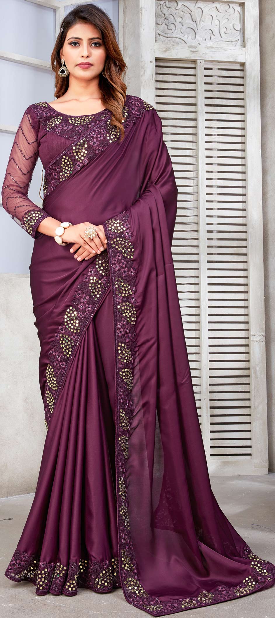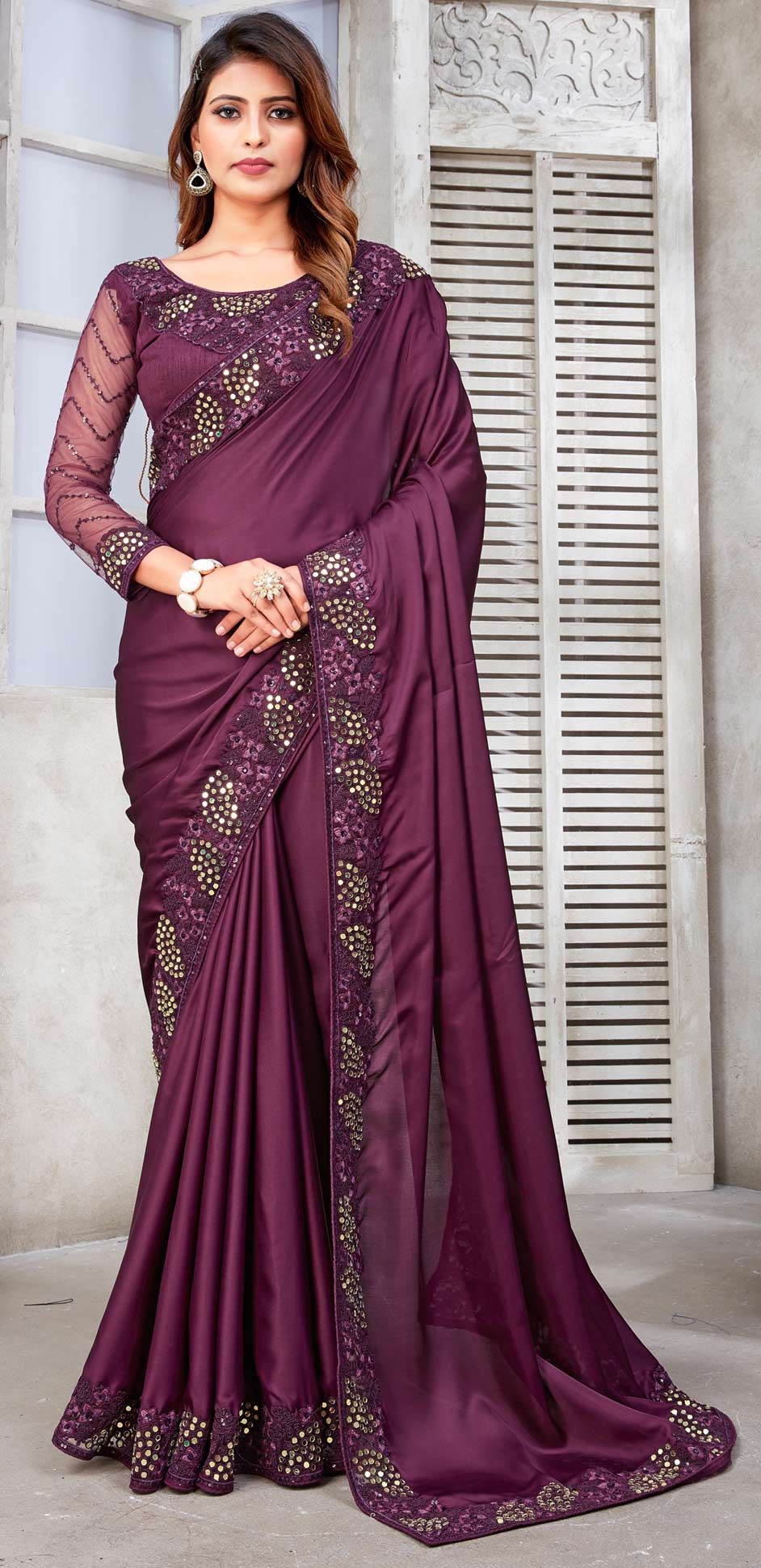 Purple and Violet color Saree in Satin Silk fabric with Embroidered, Stone work