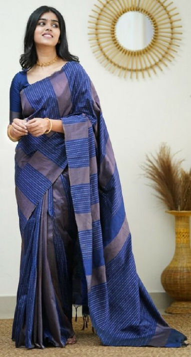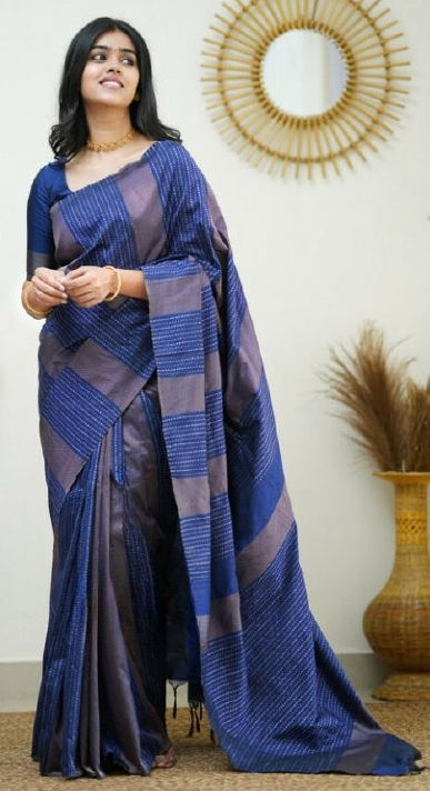 Blue color Saree in Silk fabric with Weaving work