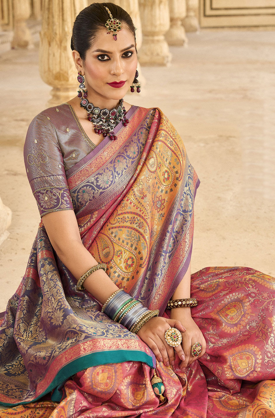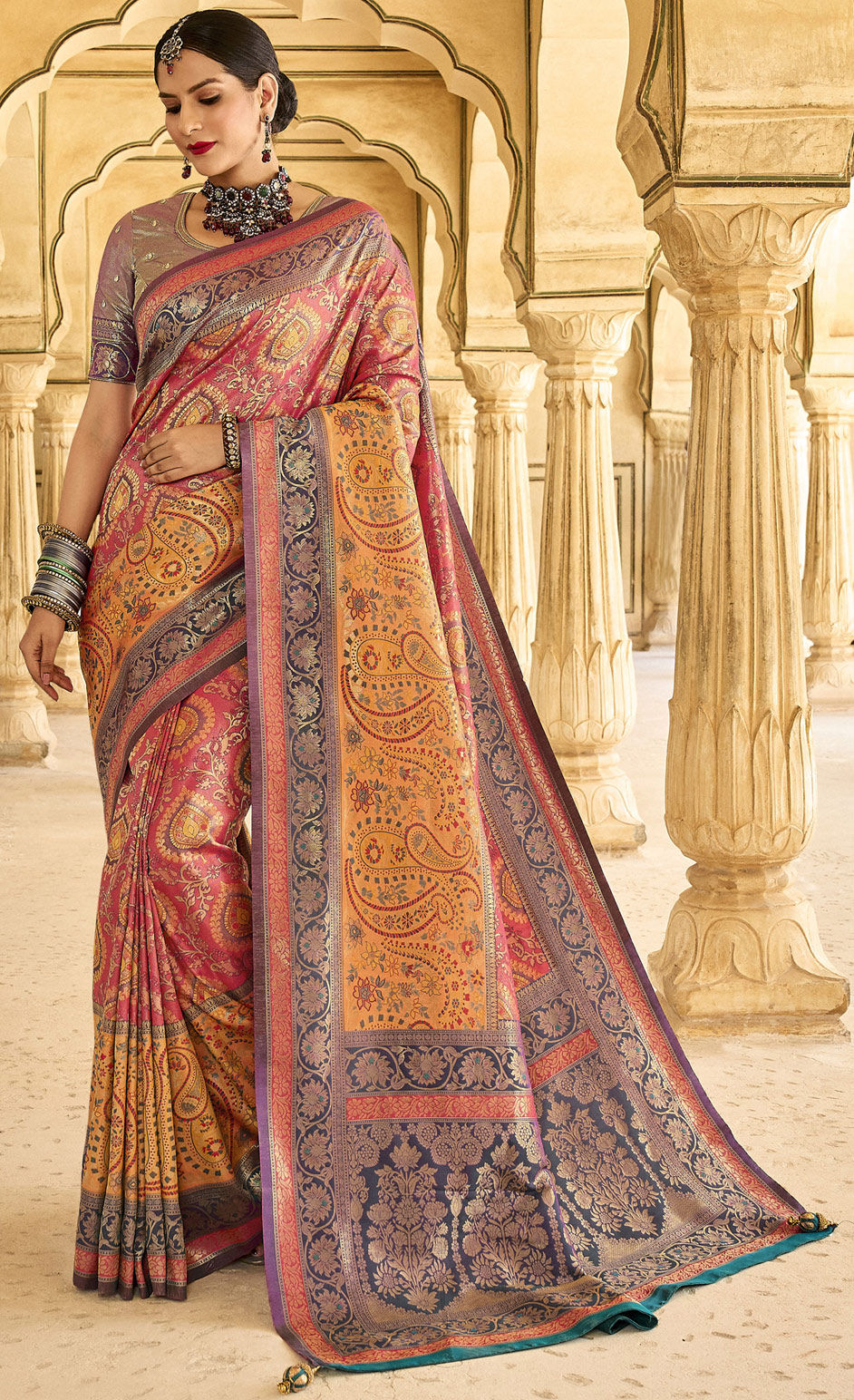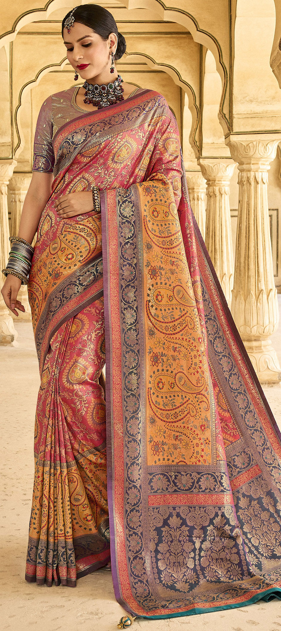 Multicolor color Saree in Silk, Tissue fabric with Weaving work