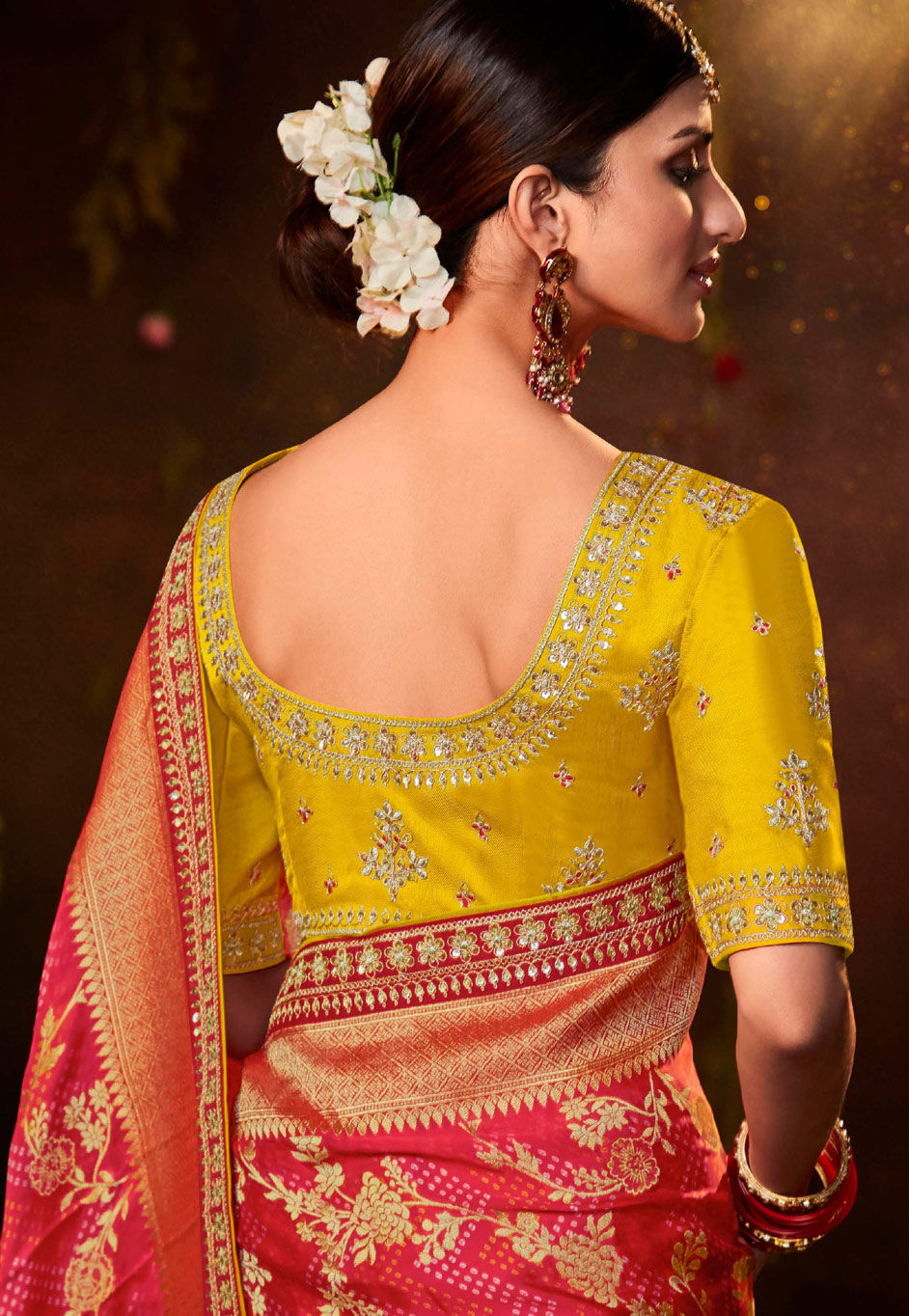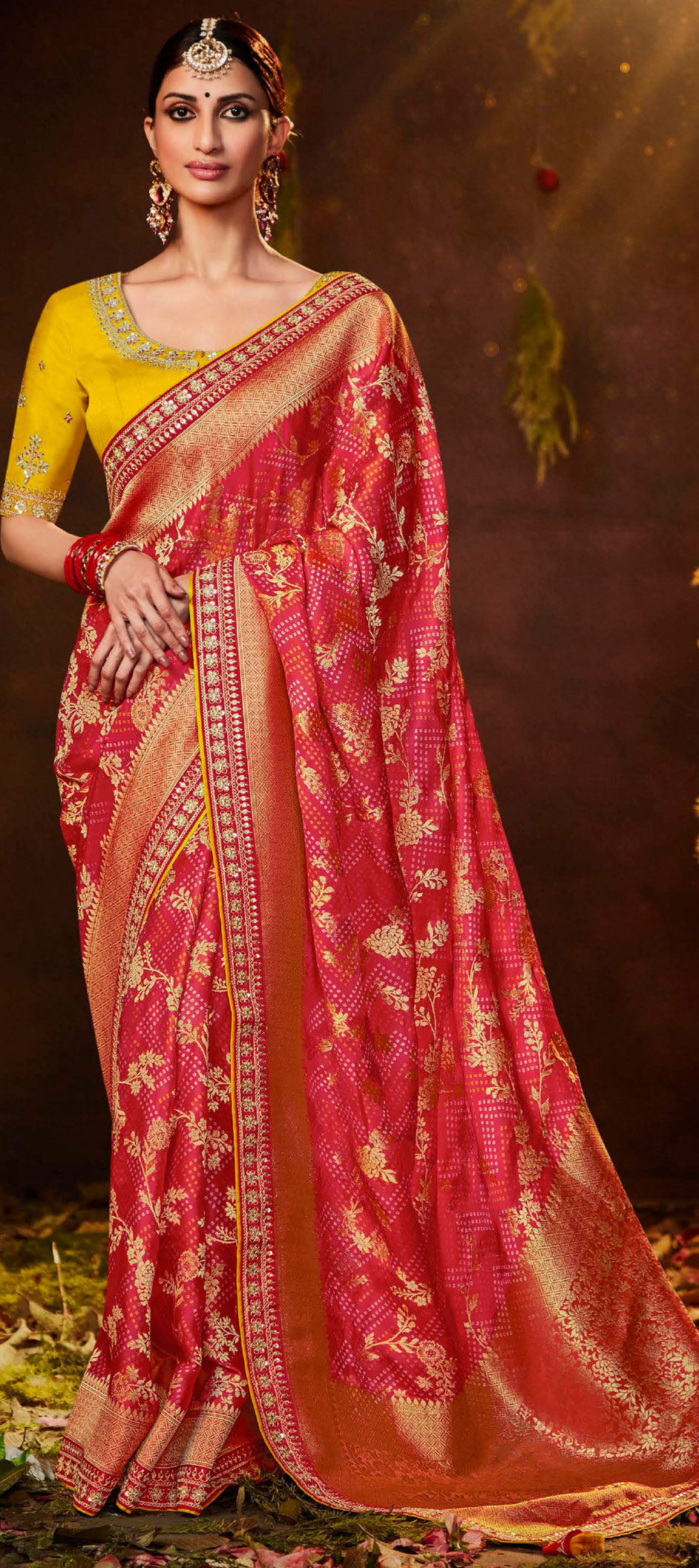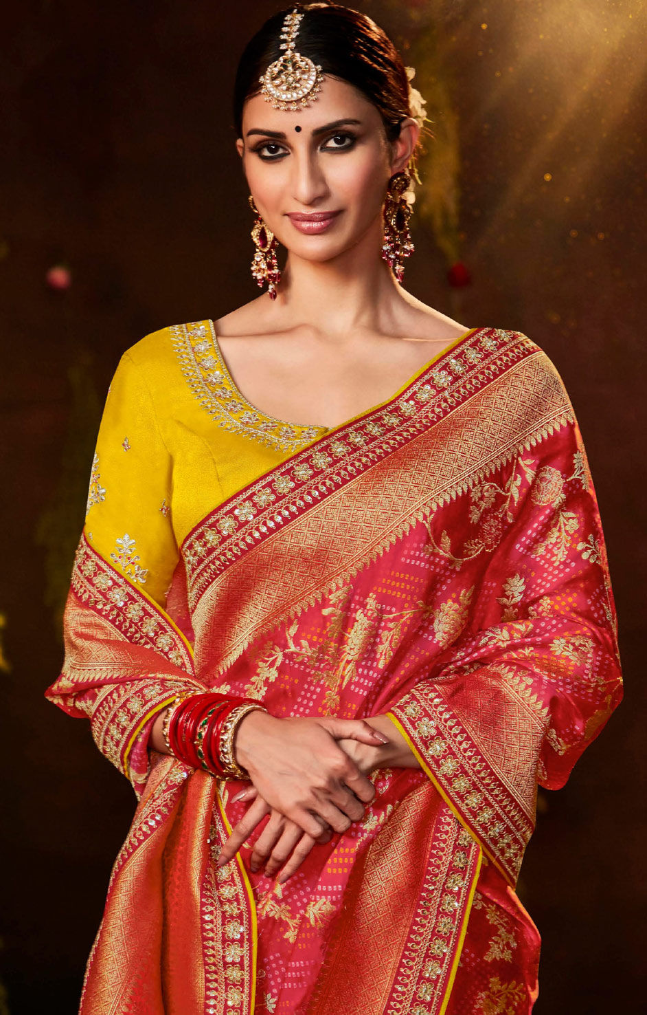 in Pink and Majenta with Weaving work