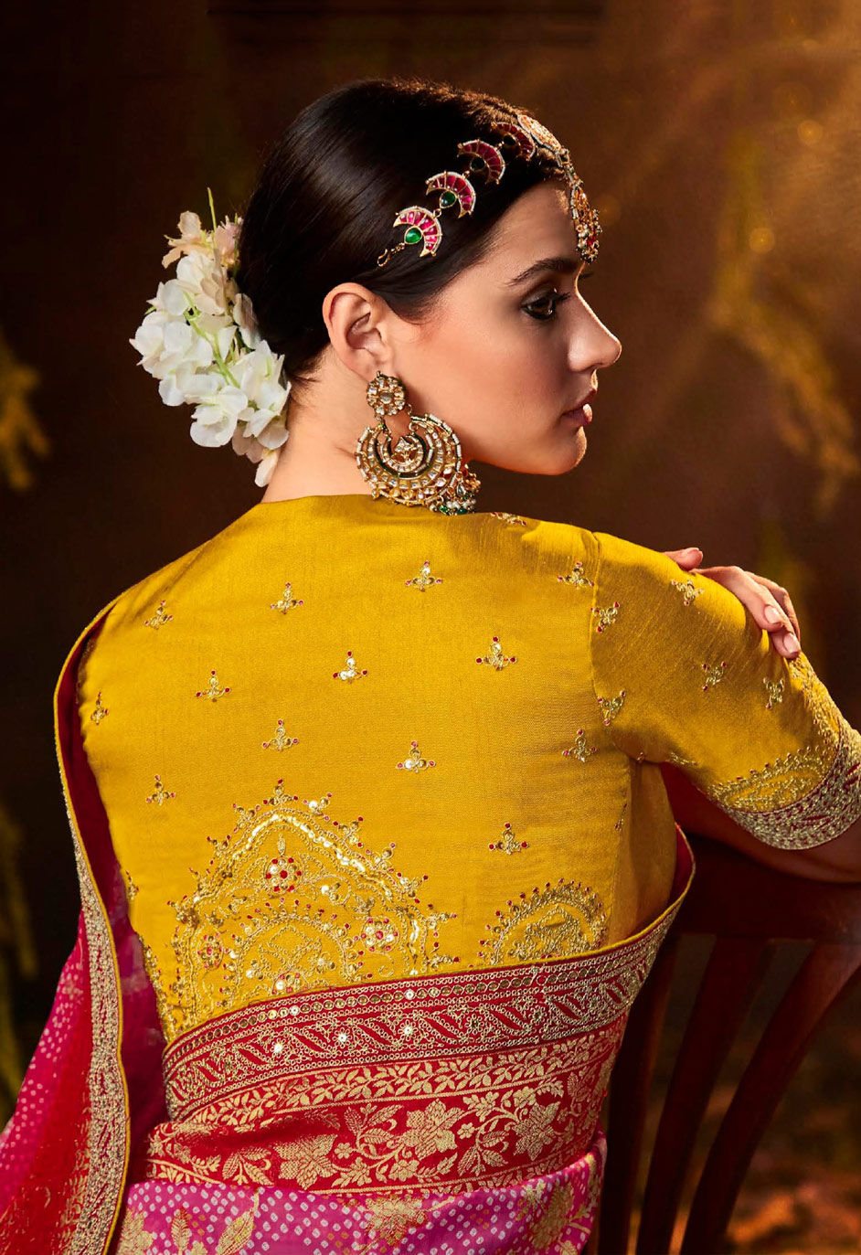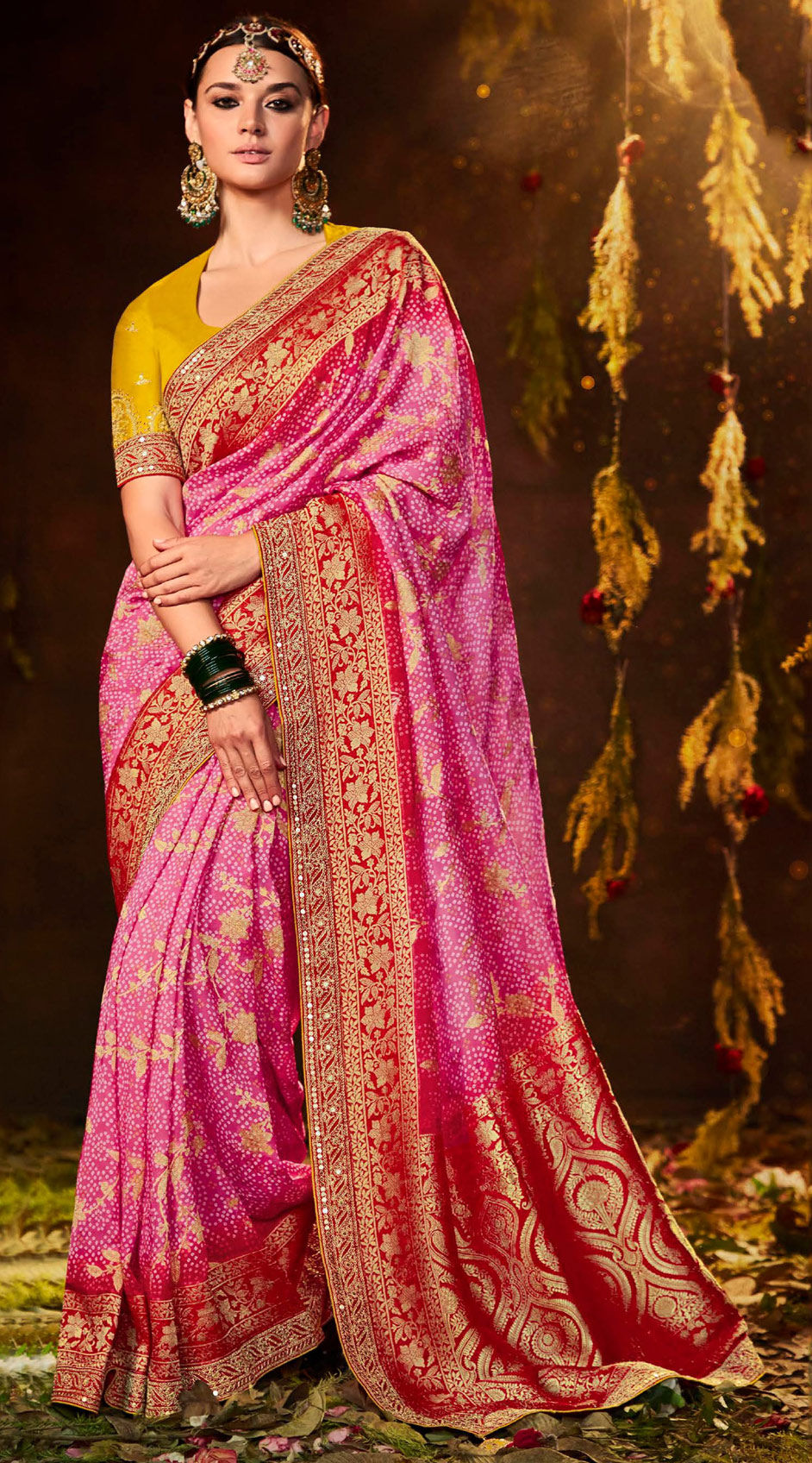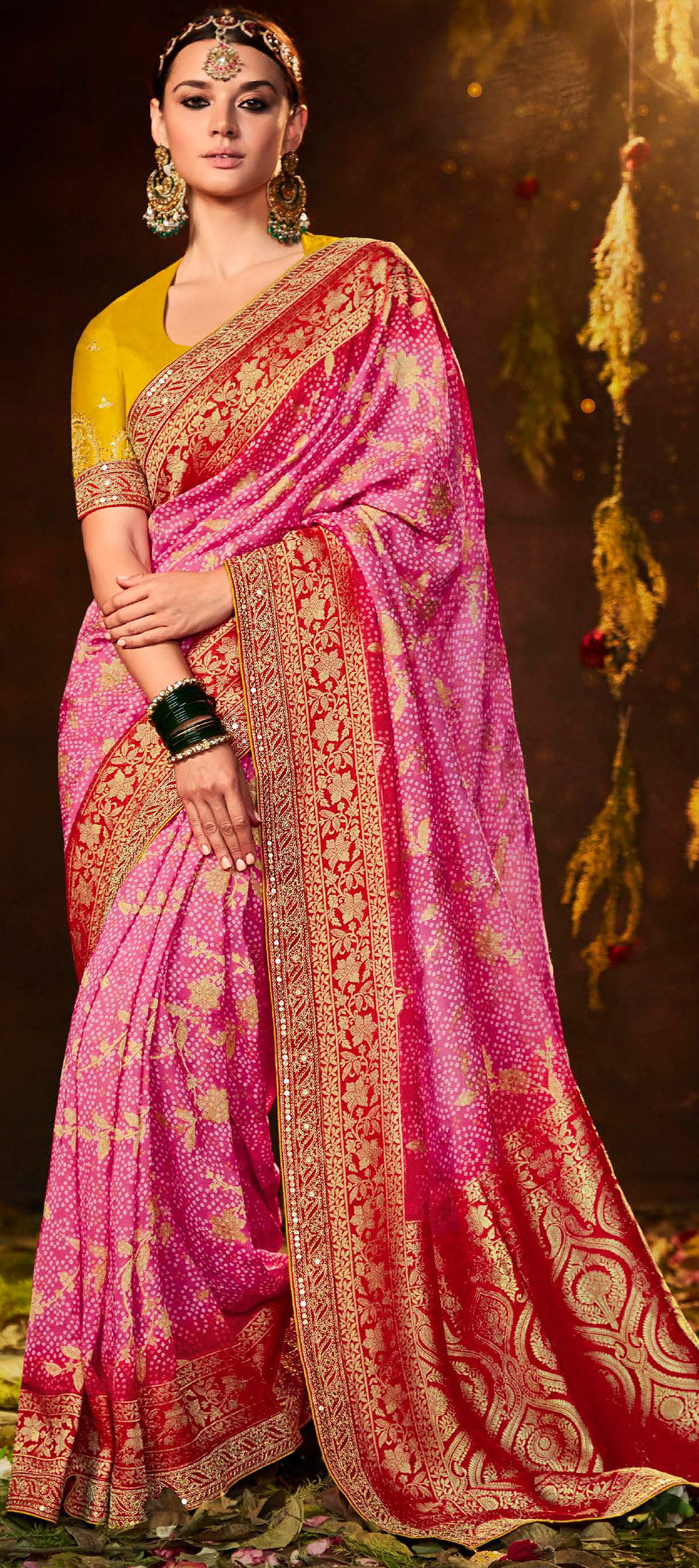 in Pink and Majenta with Weaving work