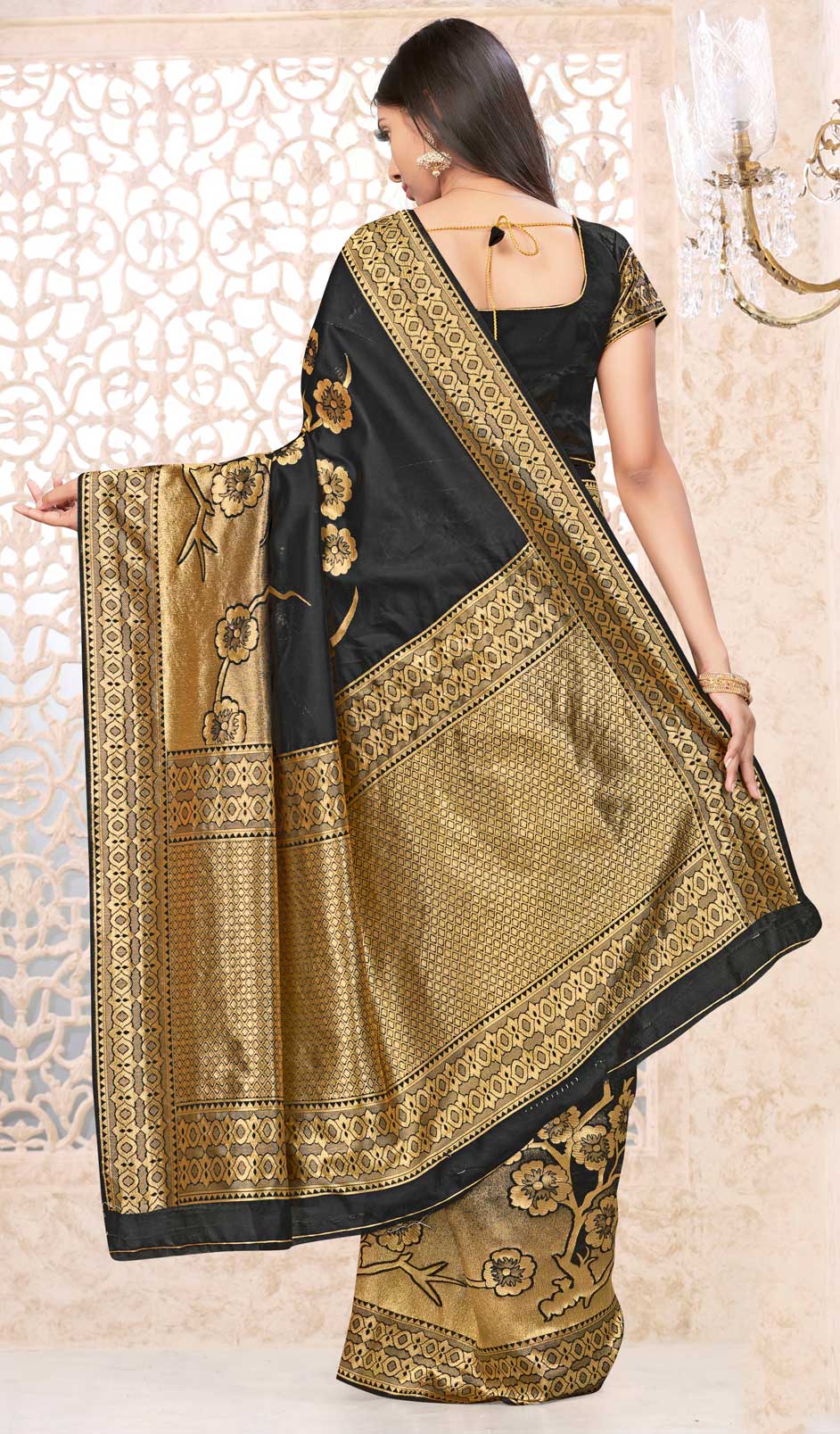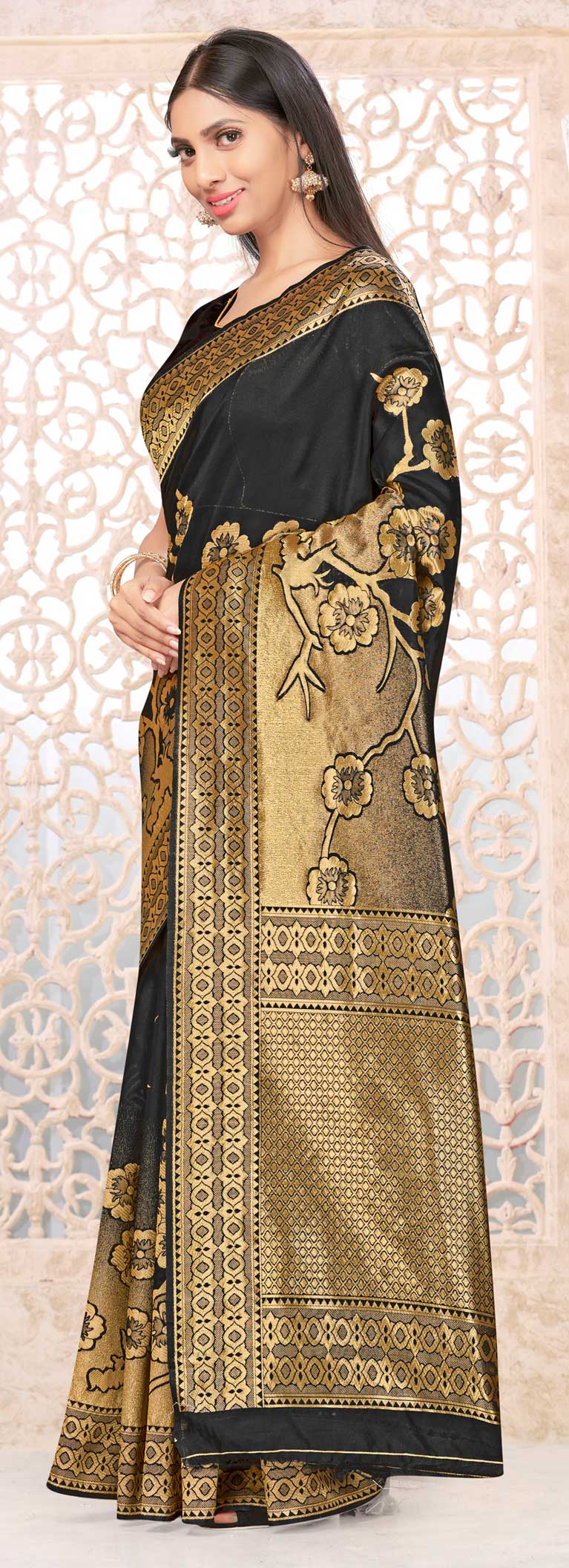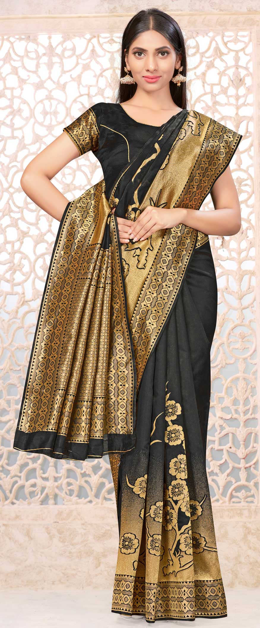 Black and Grey color Saree in Art Silk, Silk fabric with Weaving work