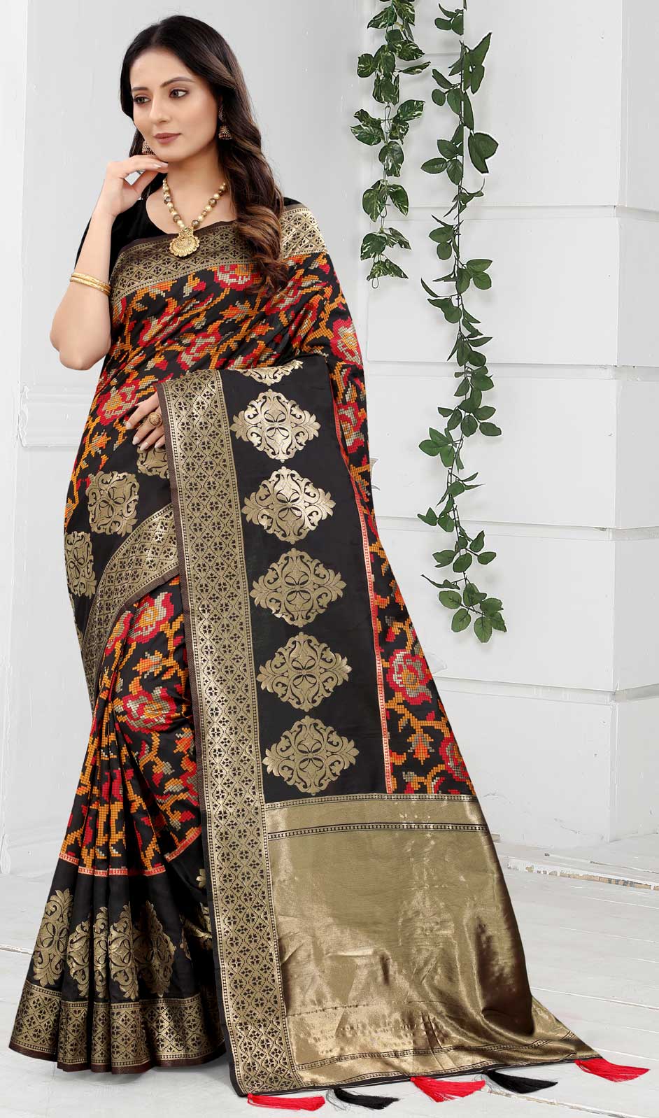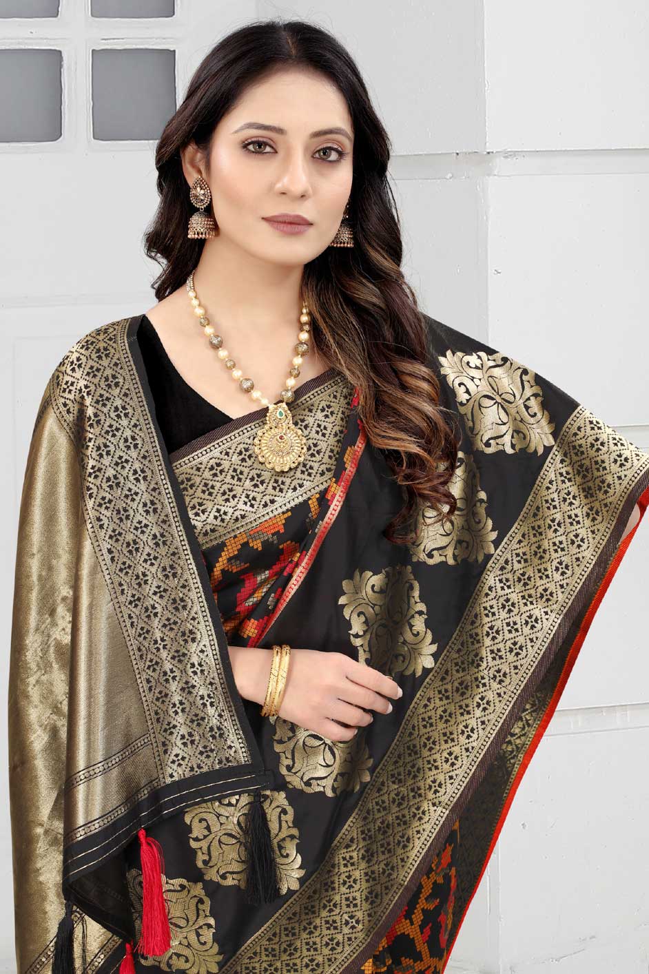 Black and Grey color Saree in Art Silk, Silk fabric with Weaving work