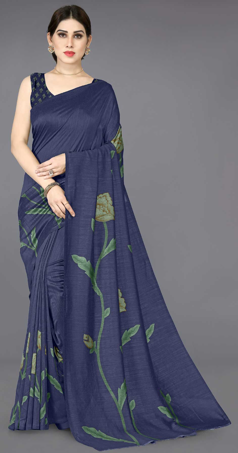 Blue color Saree in Art Silk, Silk fabric with Floral, Printed work