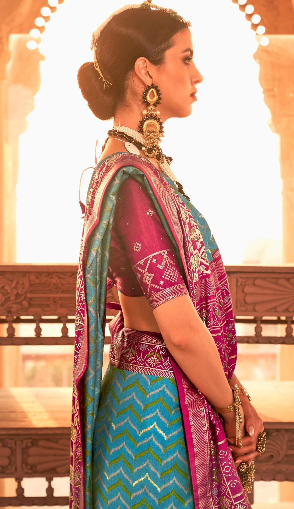 Blue color Saree in Patola Silk, Silk fabric with Printed work