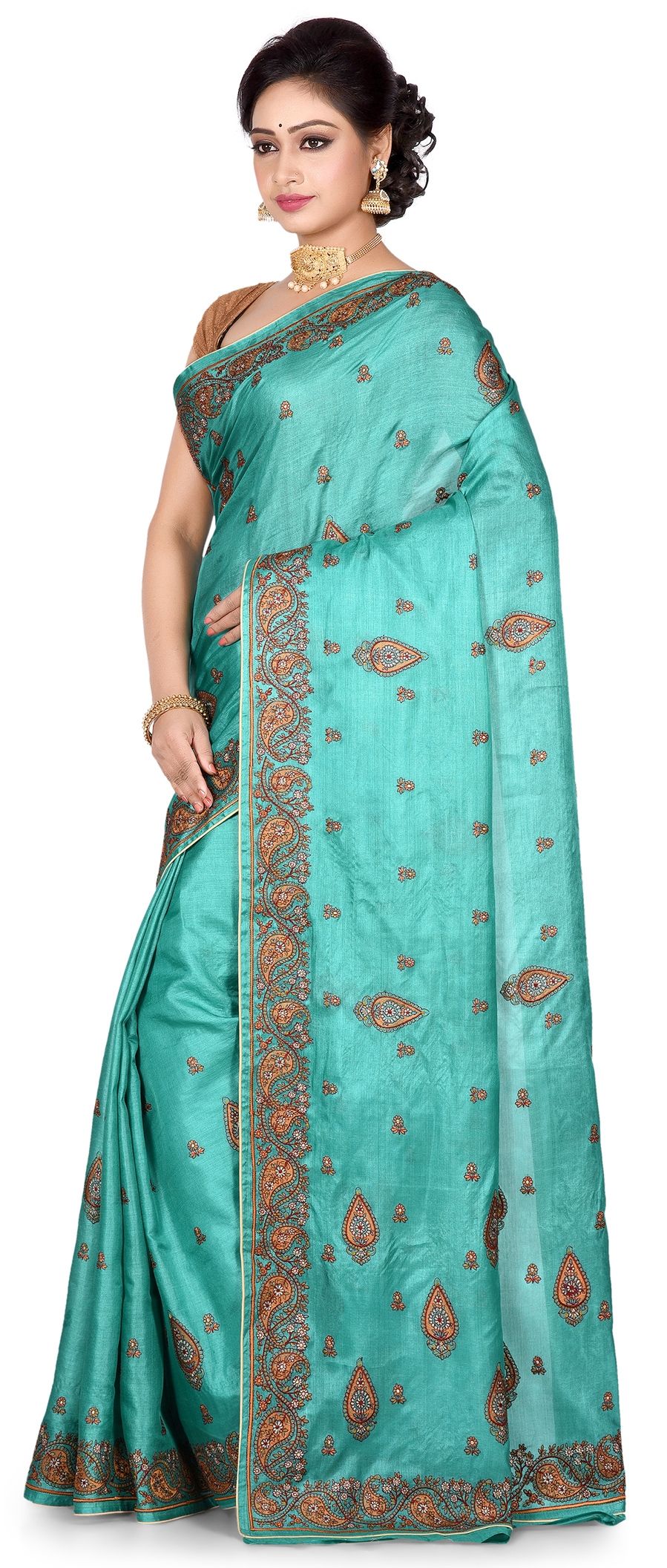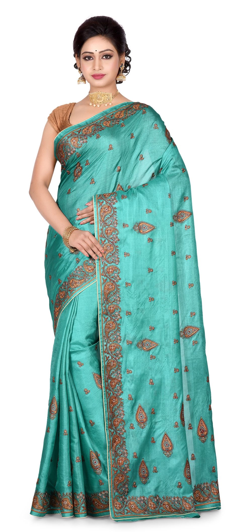 Blue color Saree in Banarasi Silk, Silk fabric with Thread work