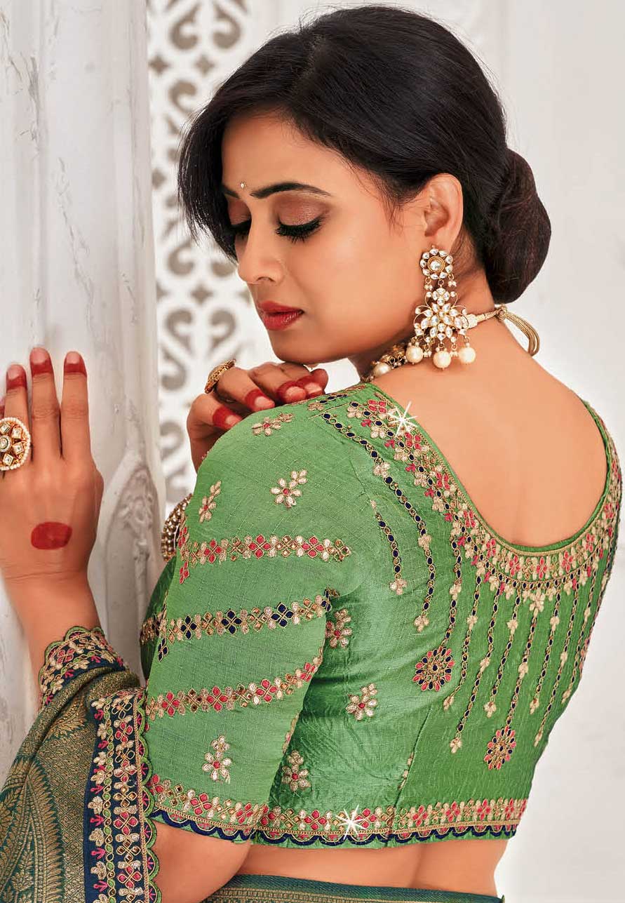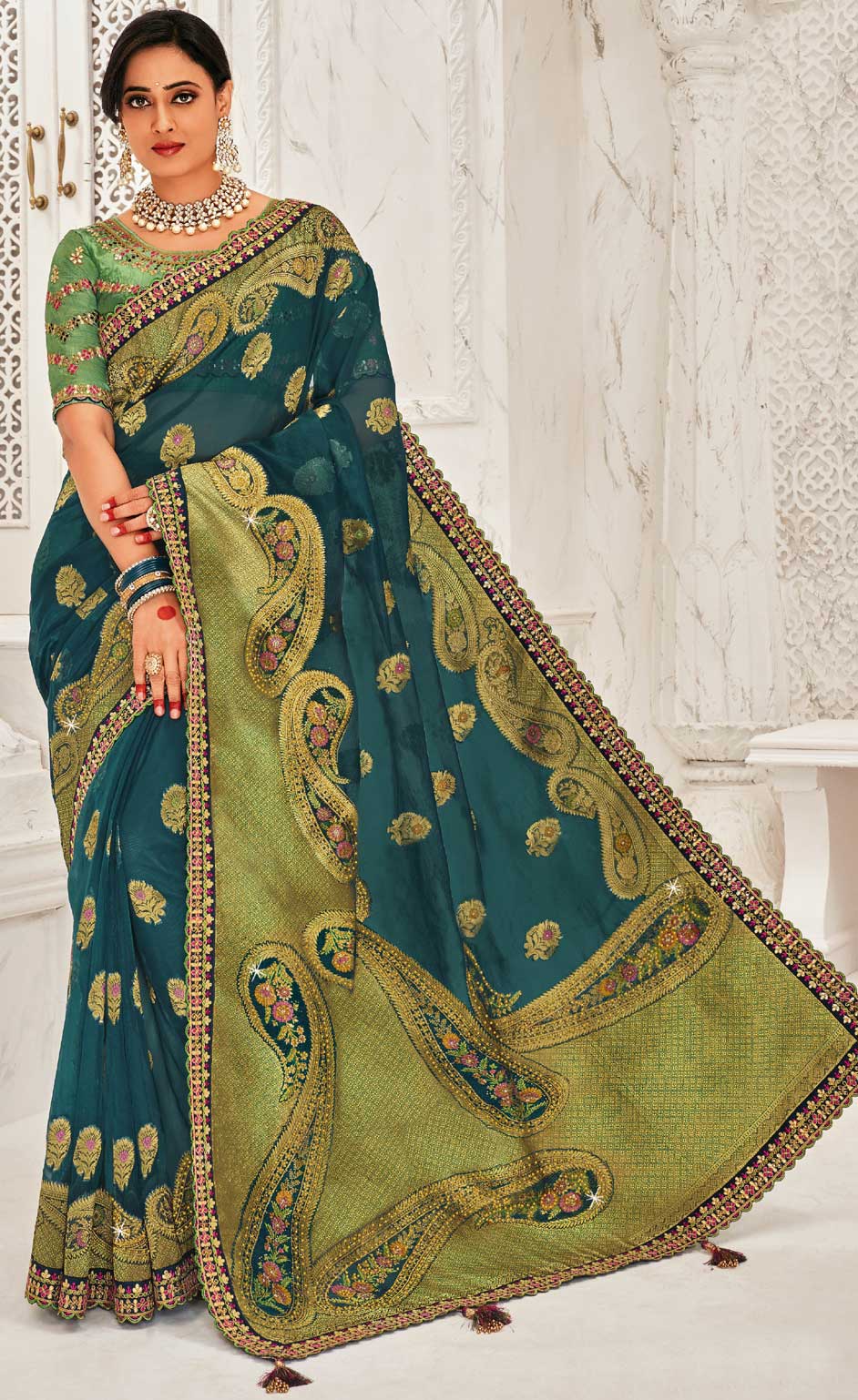 Blue color Saree in Organza Silk, Silk fabric with Embroidered, Stone, Thread work