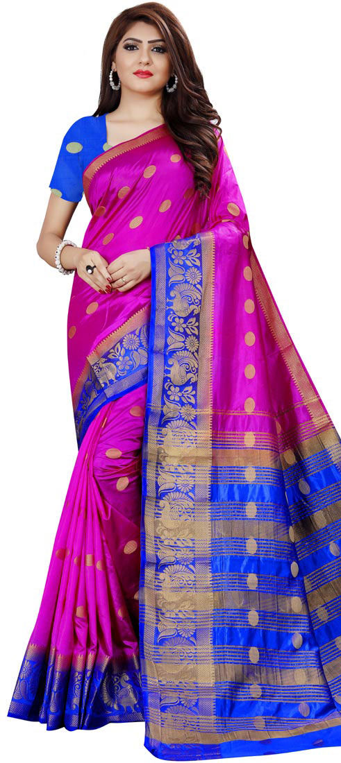 Blue color Saree in Naylon Silk, Silk fabric with Weaving work