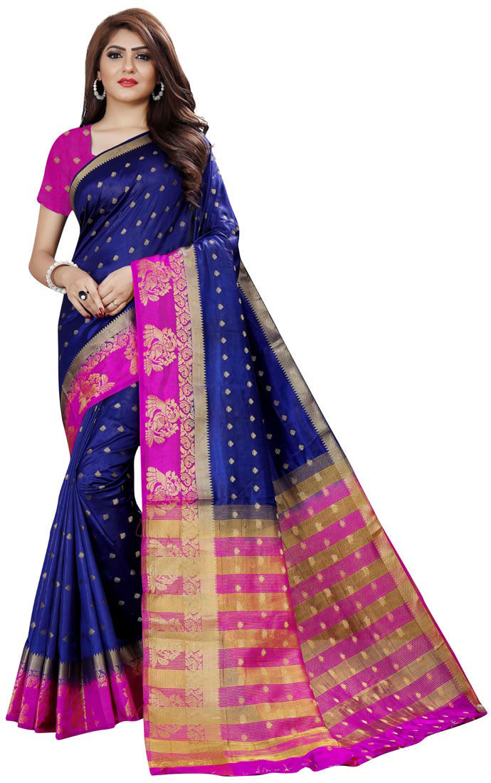 Blue color Saree in Naylon Silk, Silk fabric with Weaving work