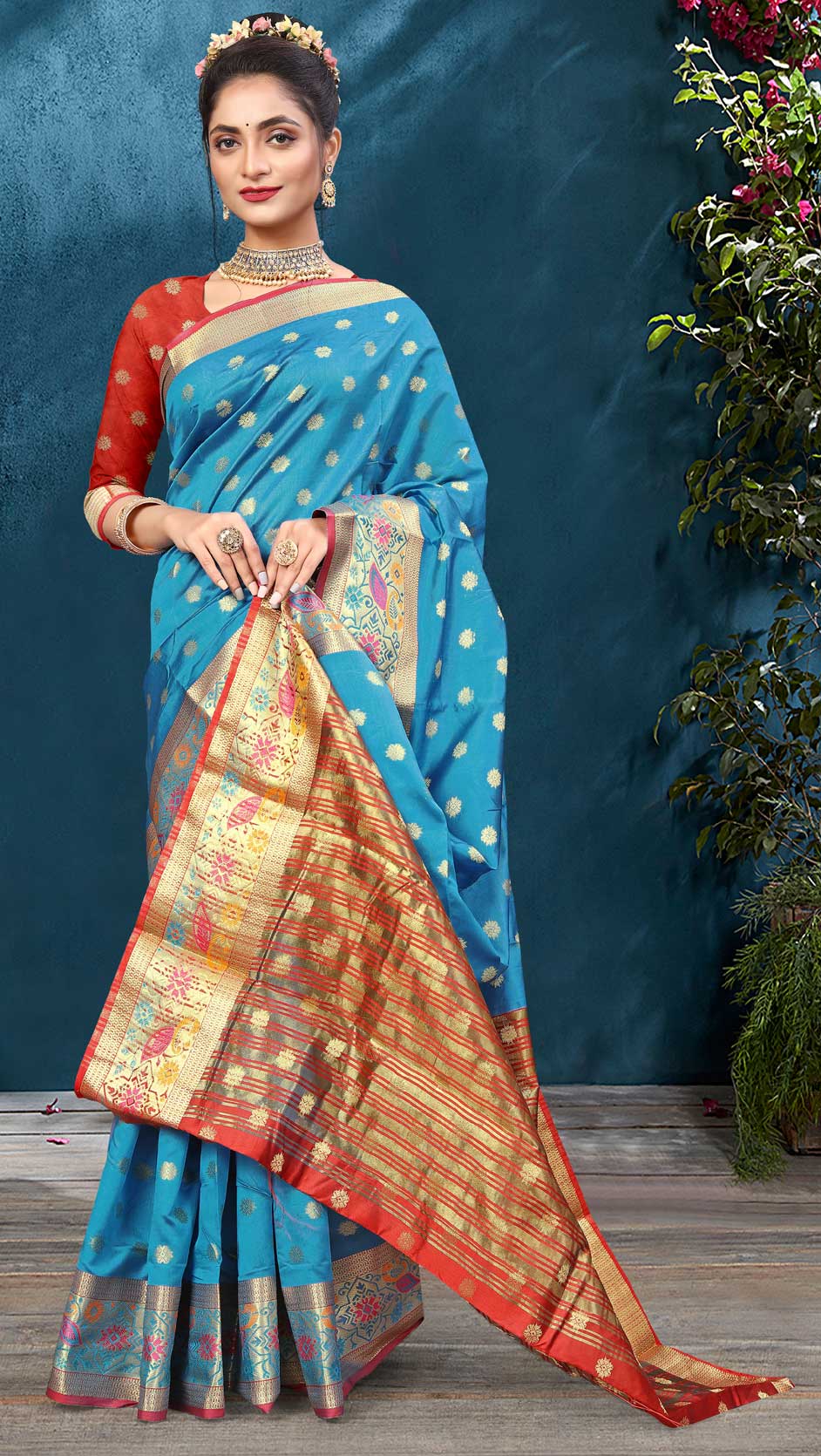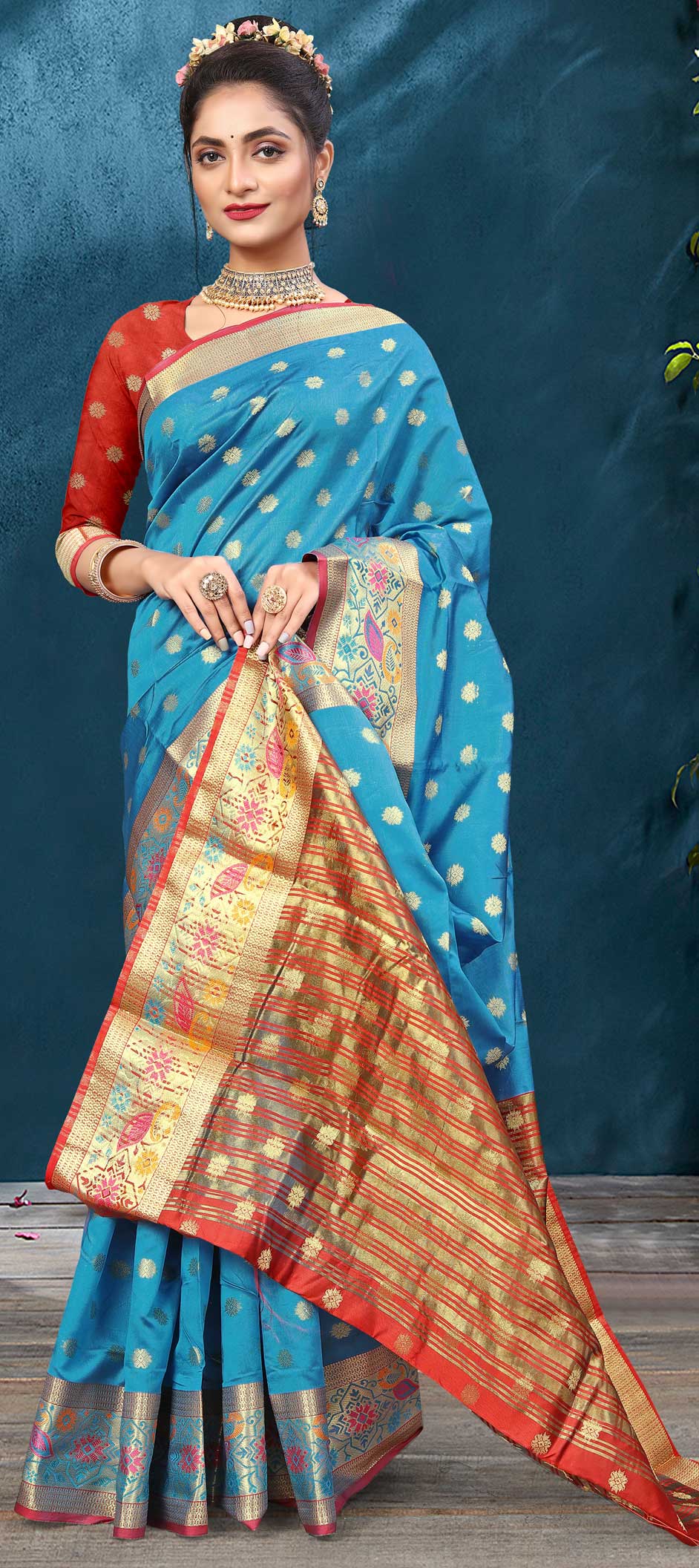 Blue color Saree in Art Silk, Silk fabric with Weaving work