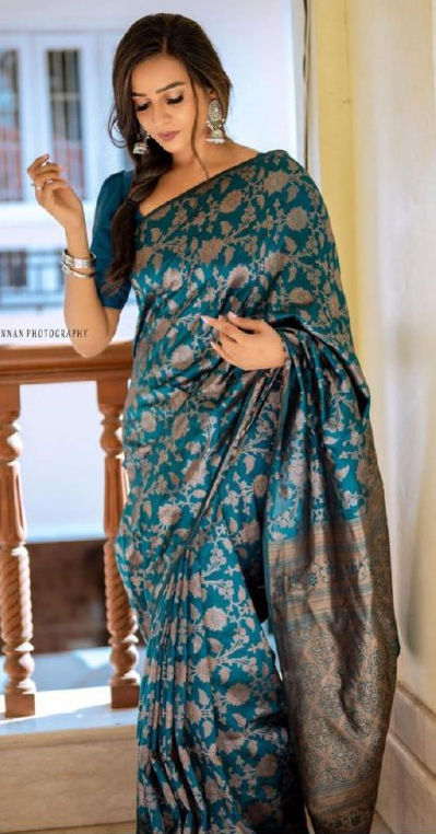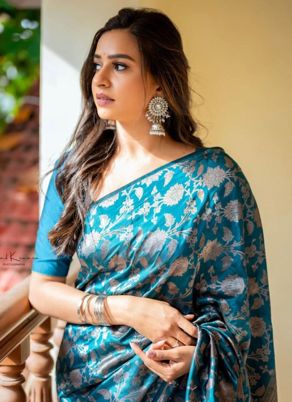 Blue color Saree in Art Silk, Silk fabric with Weaving work