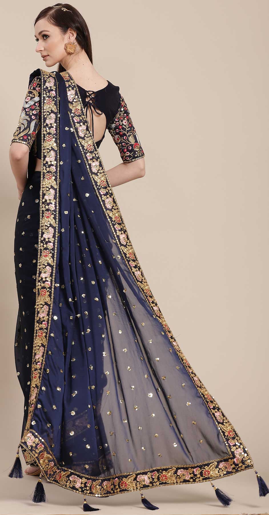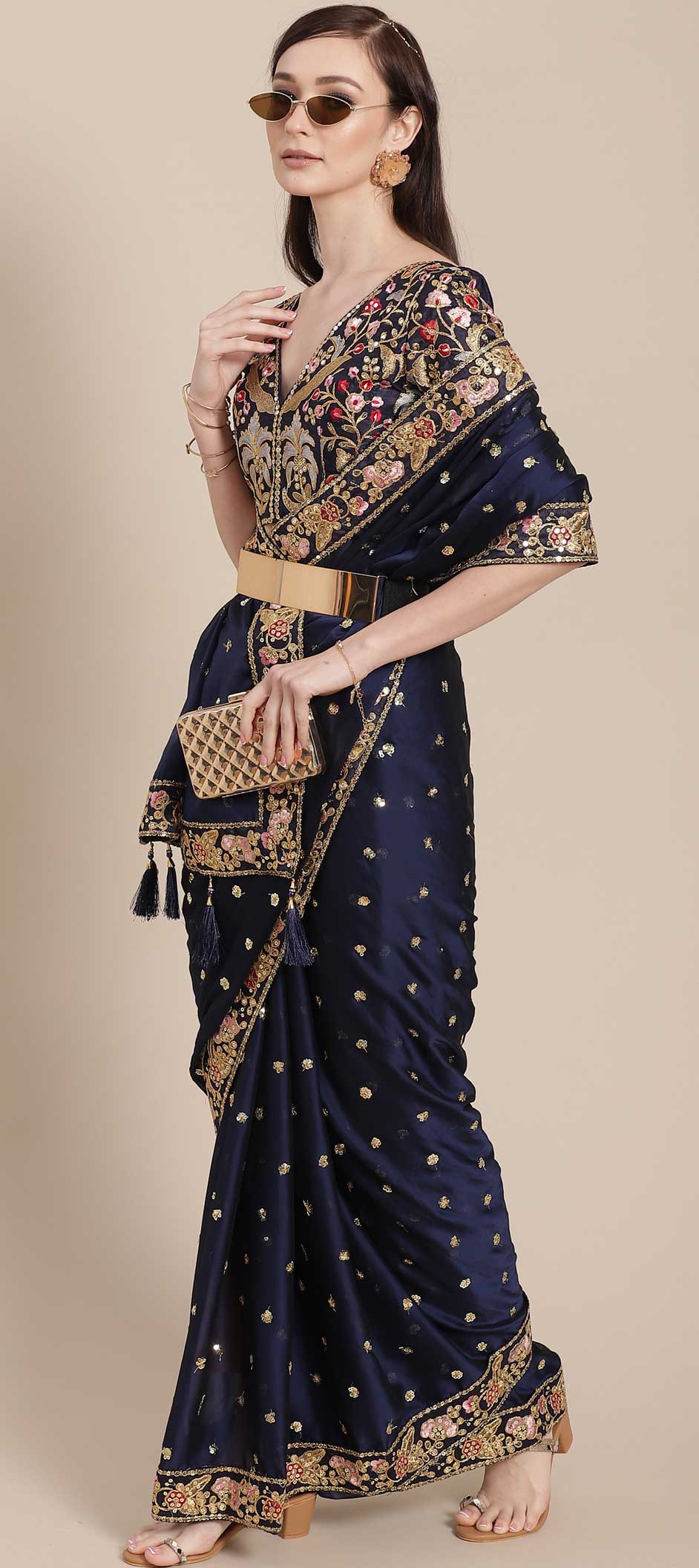 Blue color Saree in Art Silk, Silk fabric with Embroidered, Sequence, Thread, Zari work
