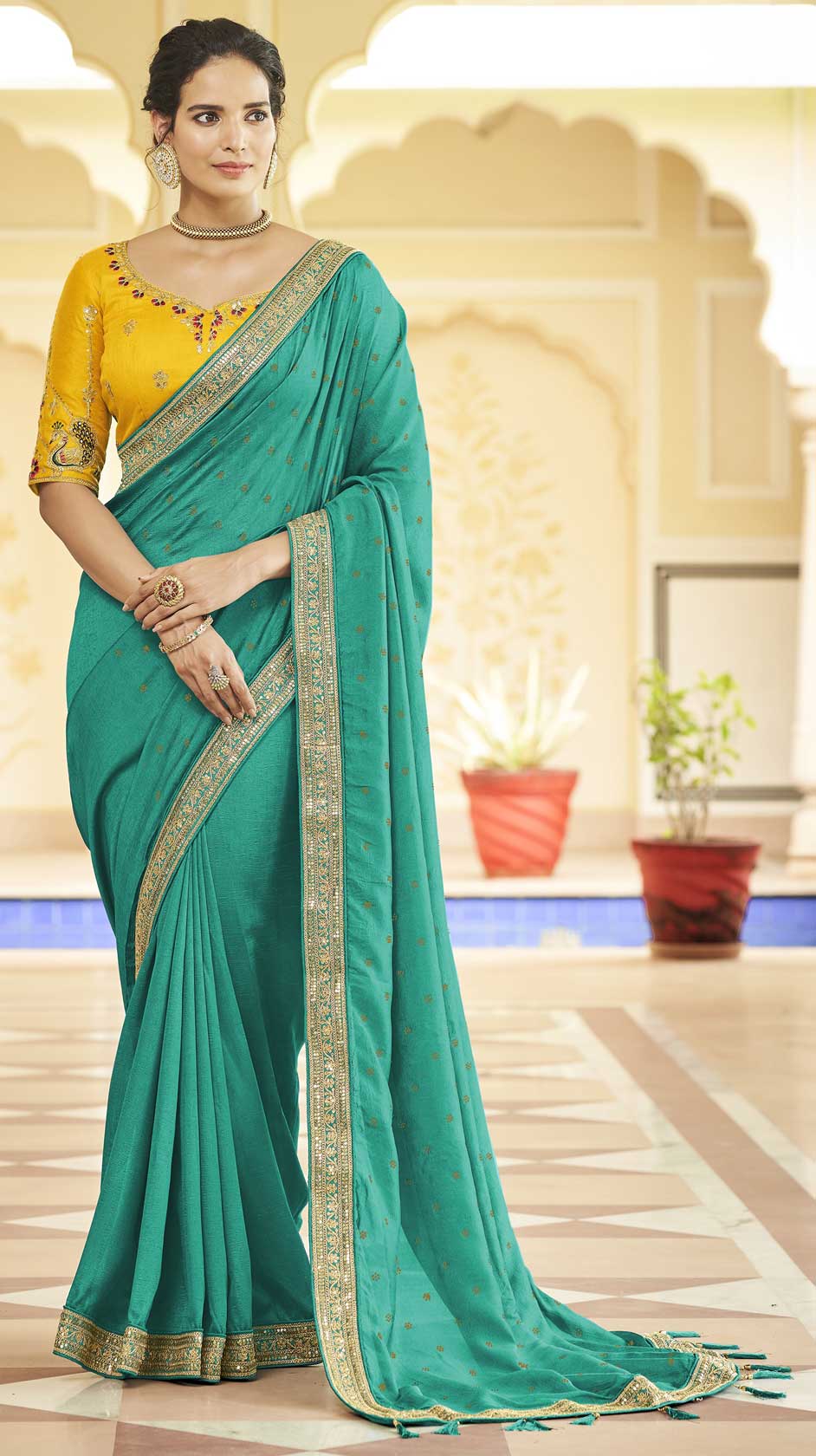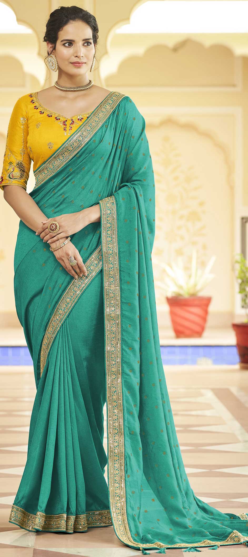 Blue color Saree in Art Silk, Silk fabric with Sequence, Swarovski, Thread, Zari work