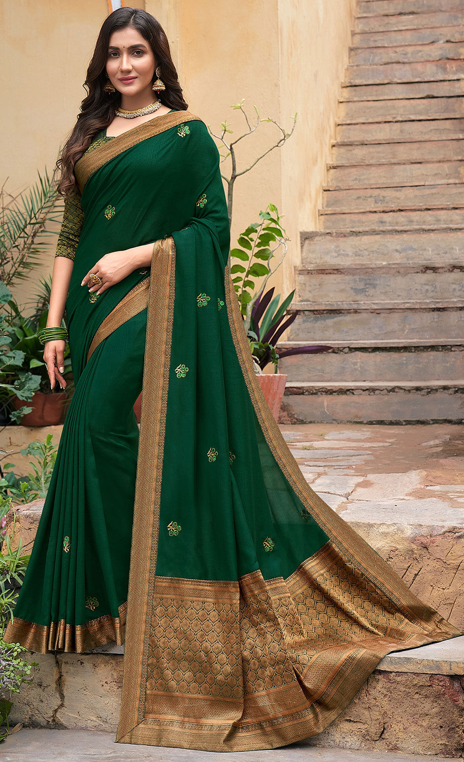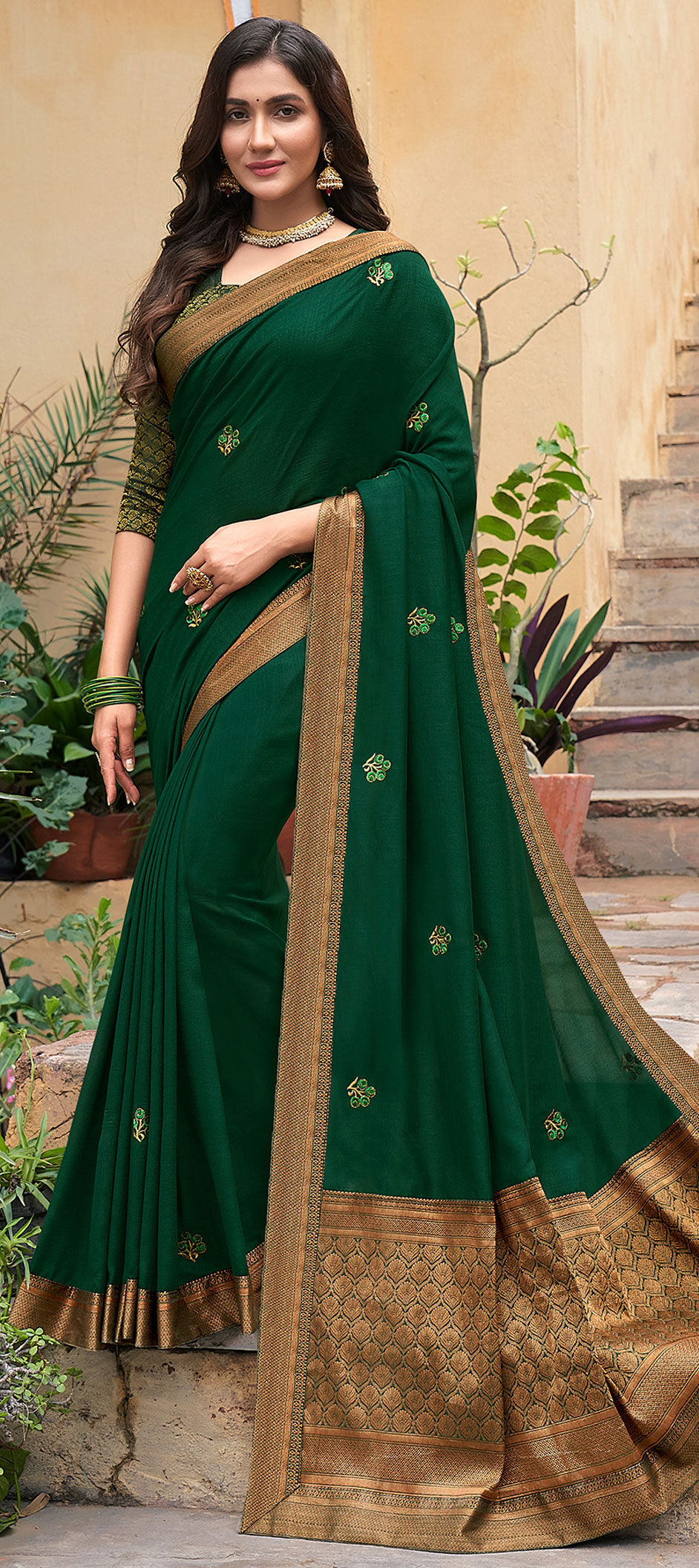 Green color Saree in Art Silk, Silk fabric with Embroidered, Thread work