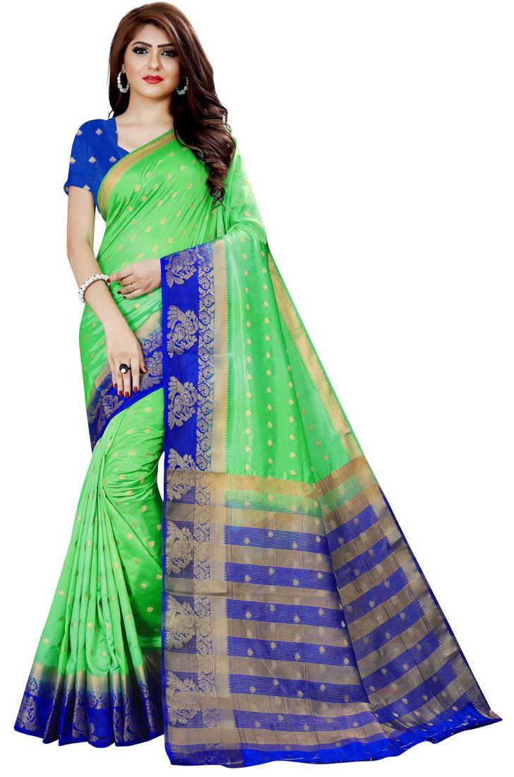 Green color Saree in Naylon Silk, Silk fabric with Weaving work