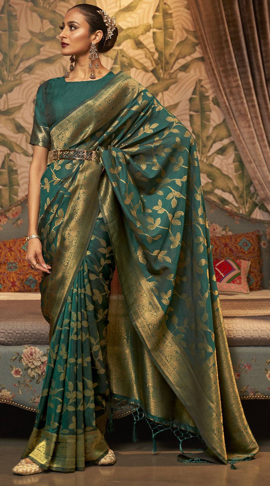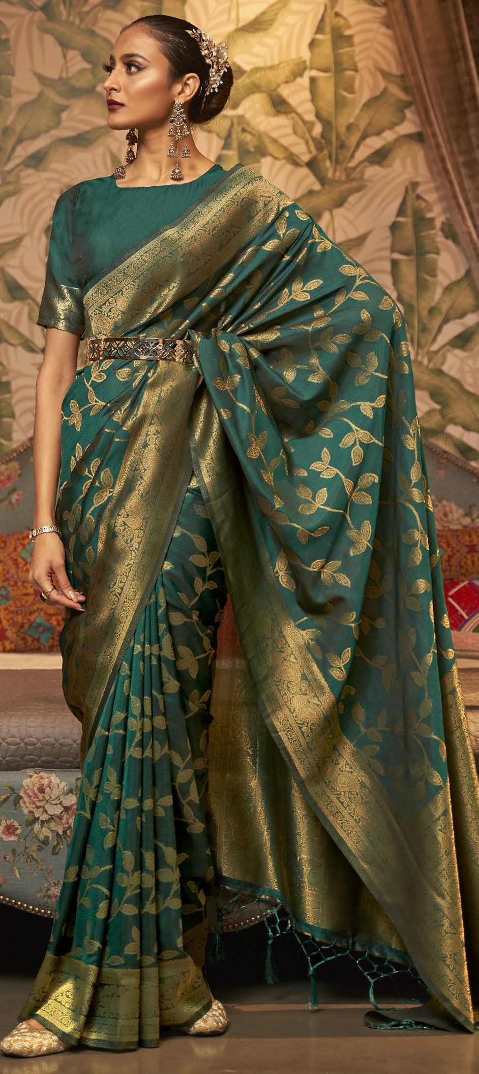 Green color Saree in Art Silk, Silk fabric with Weaving work