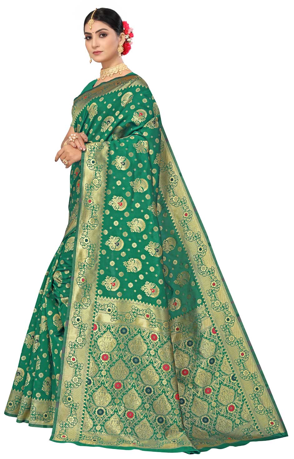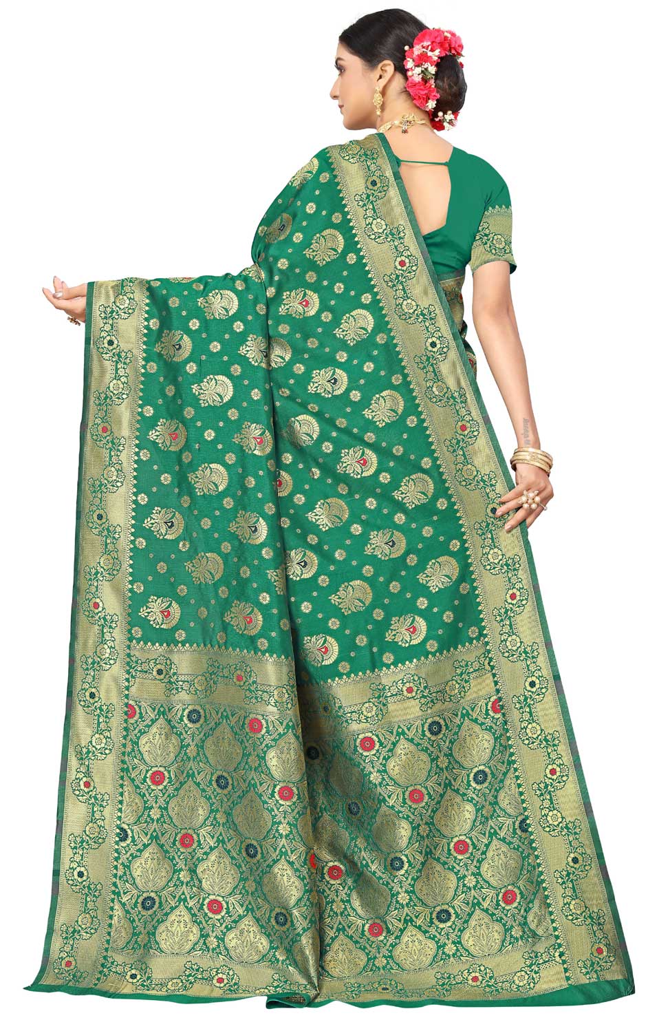Green color Saree in Art Silk, Silk fabric with Weaving work