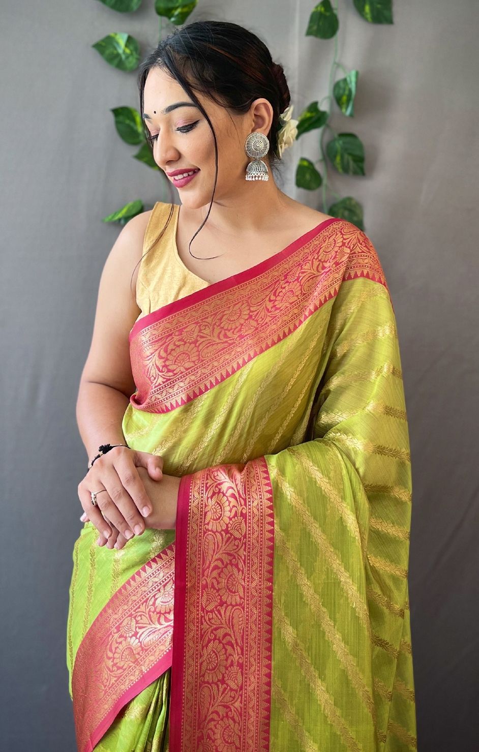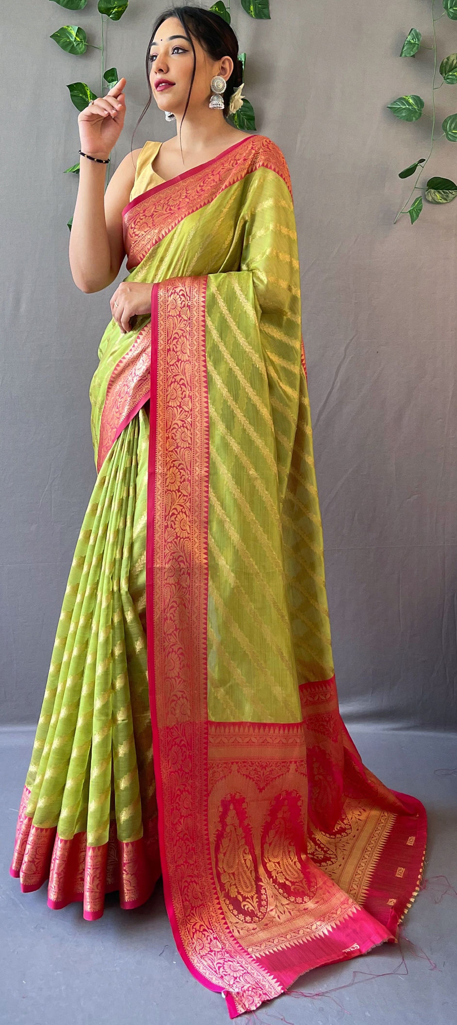 in Green with Weaving work