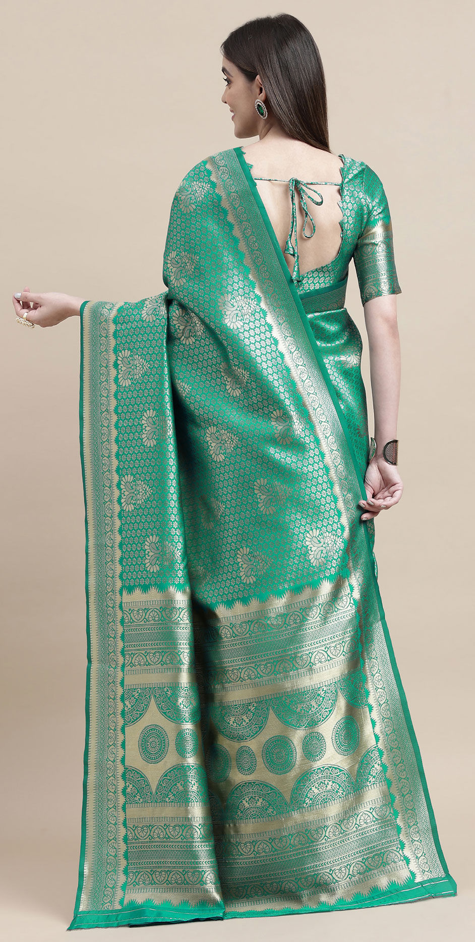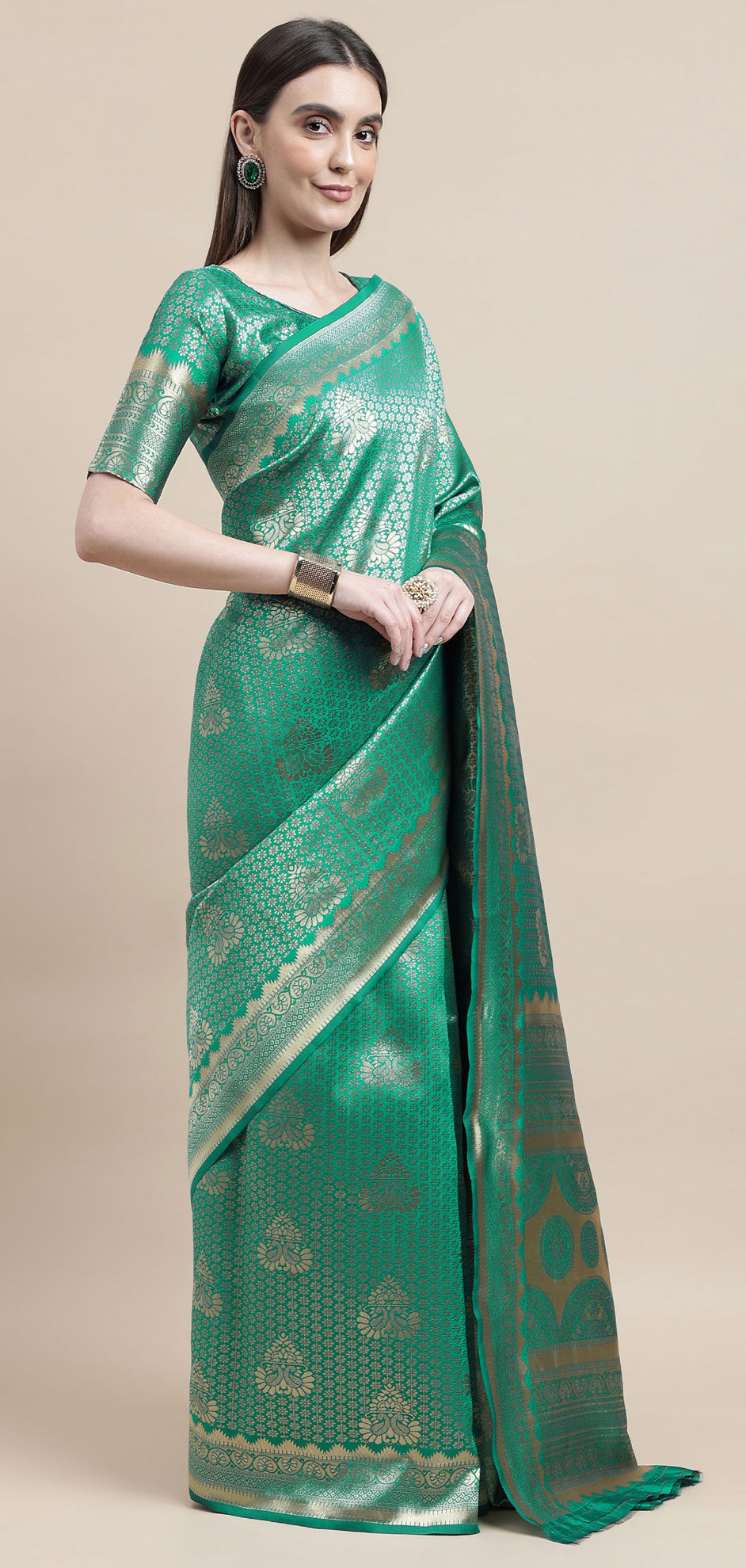 Green color Saree in Art Silk, Silk fabric with Weaving work