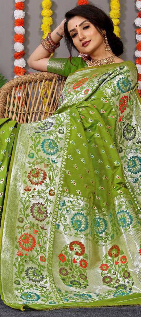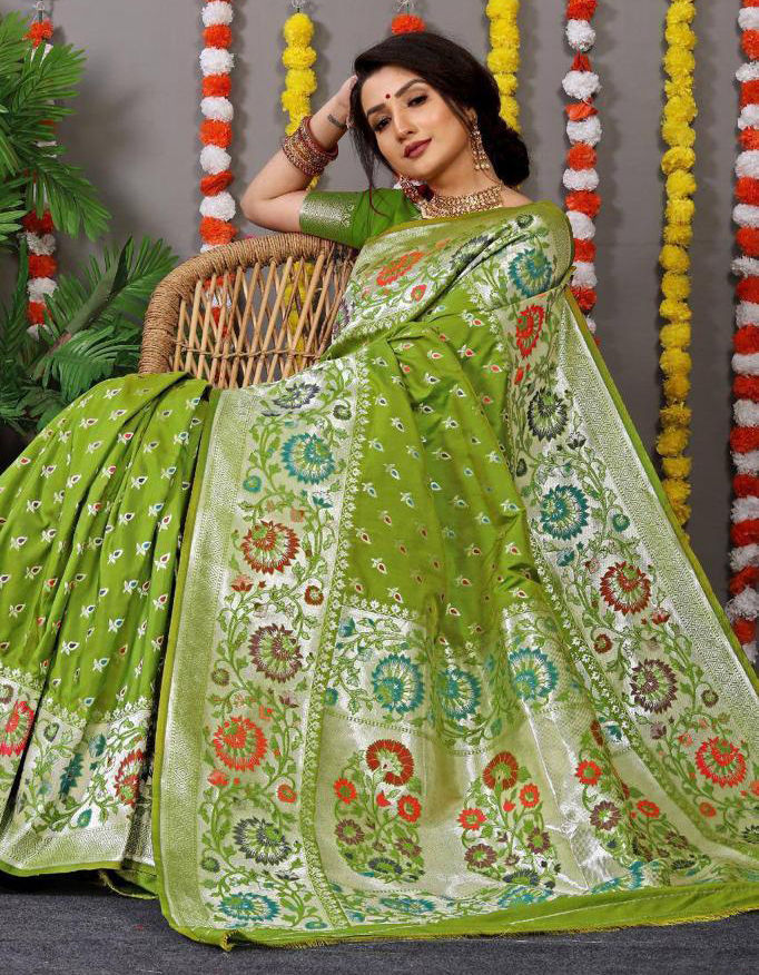 Green color Saree in Art Silk, Silk fabric with Printed, Weaving work