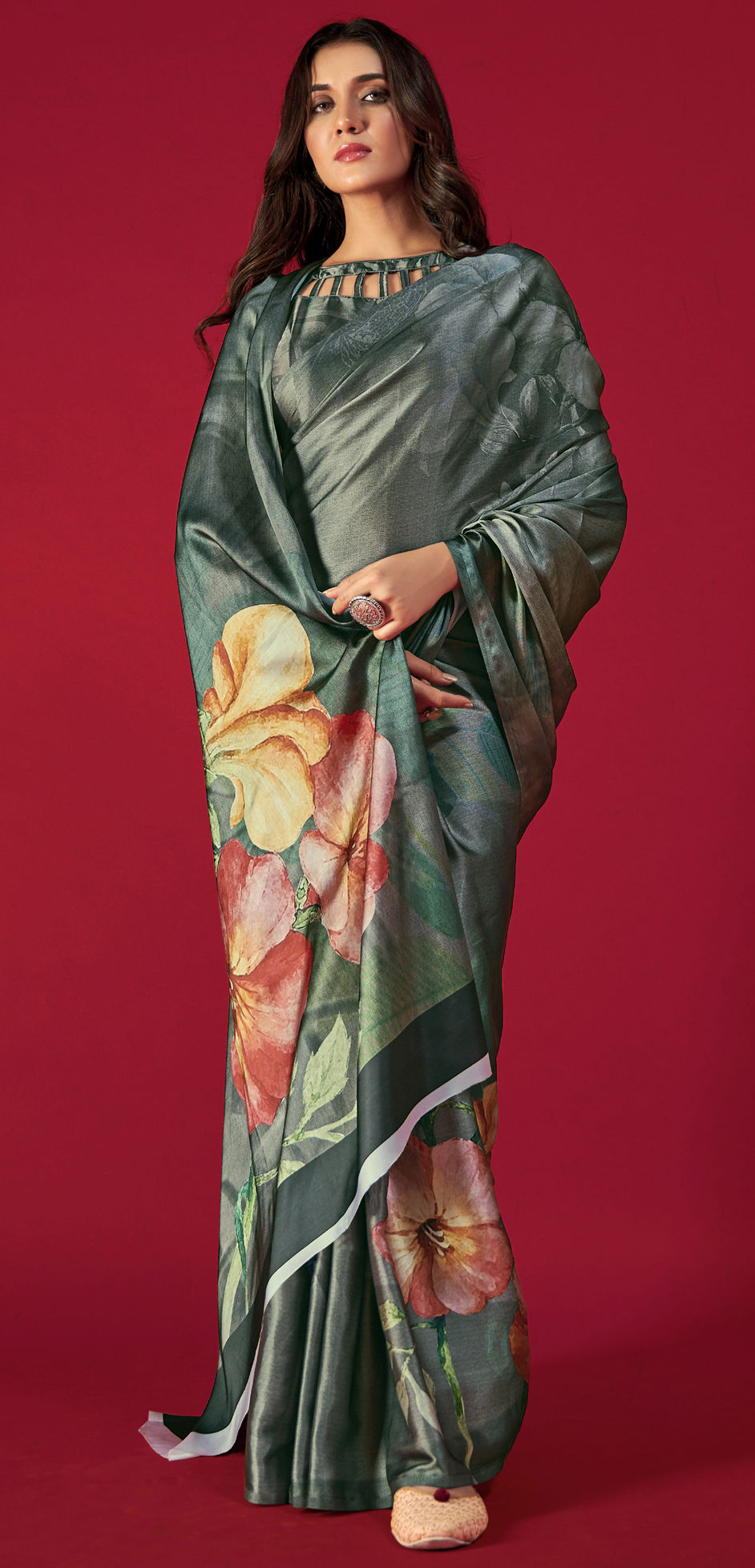 Crepe Silk Casual Saree in Multicolor with Printed work
