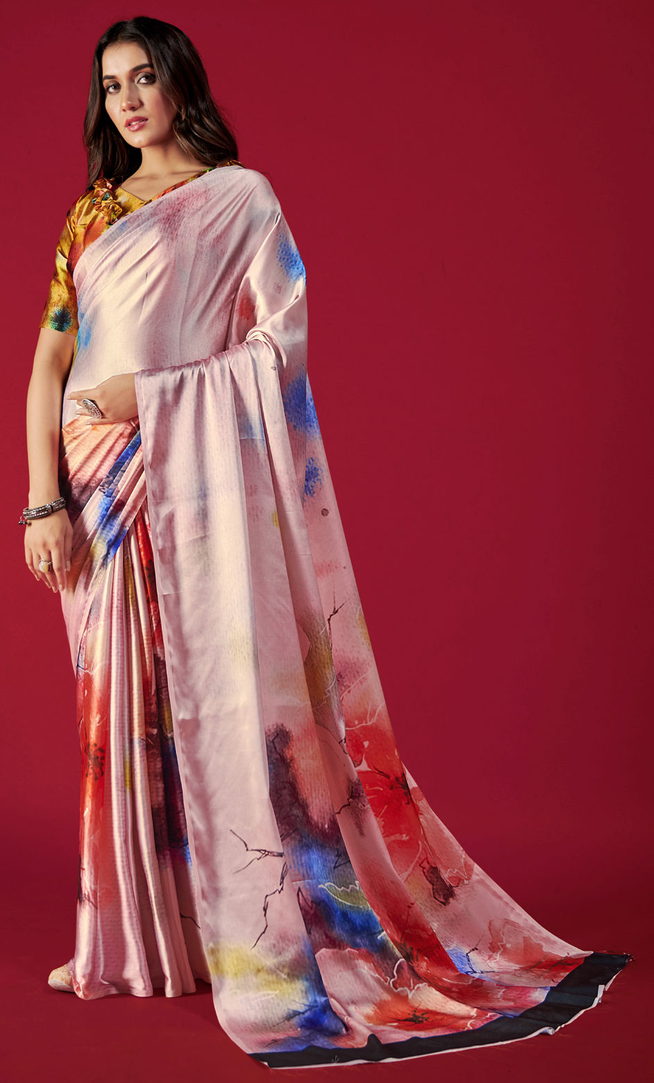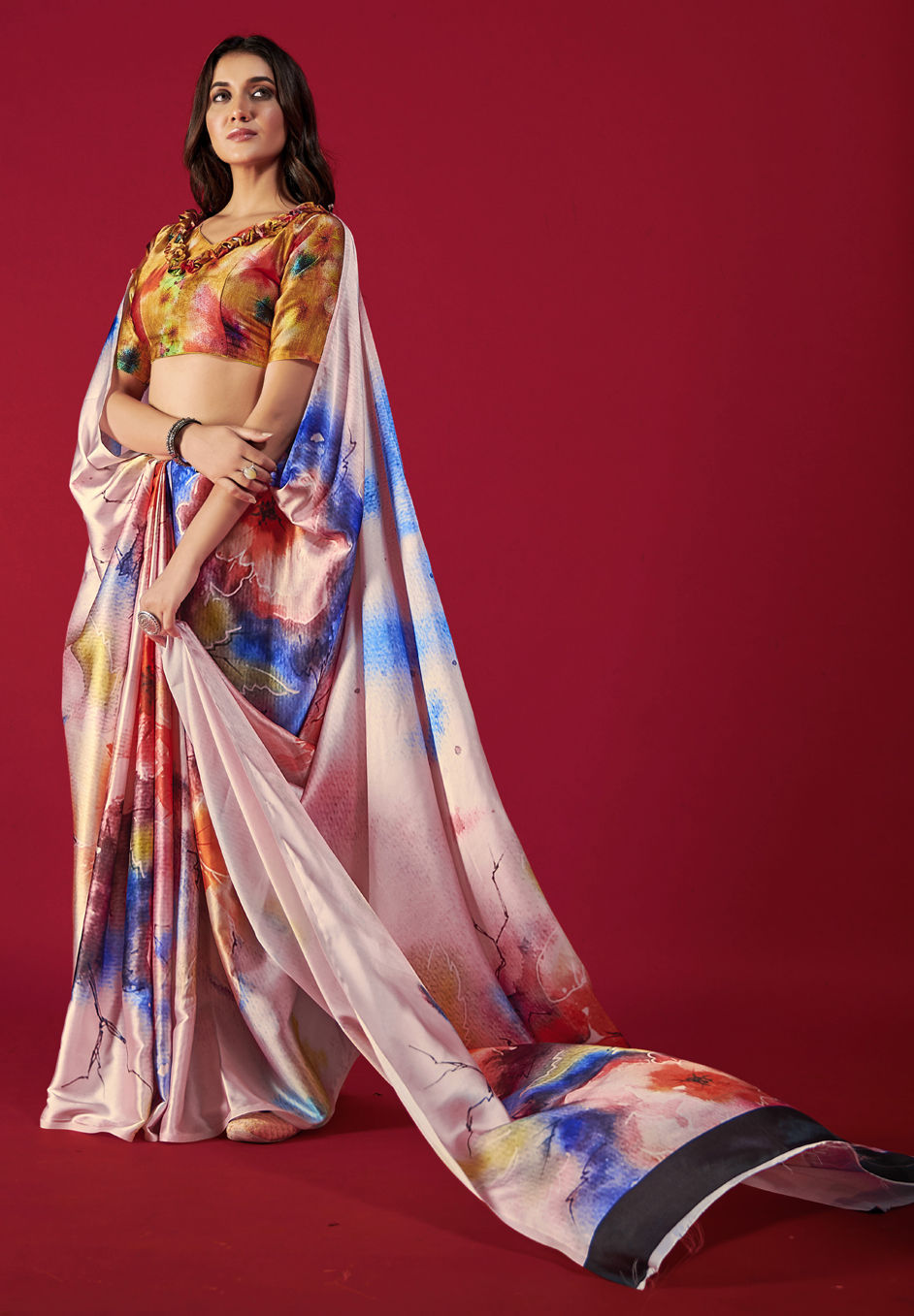 Multicolor color Saree in Crepe Silk, Silk fabric with Printed work