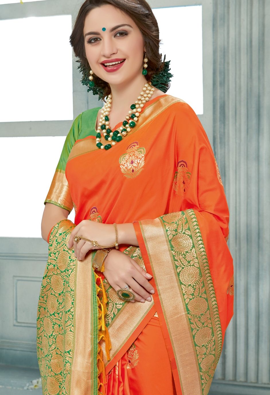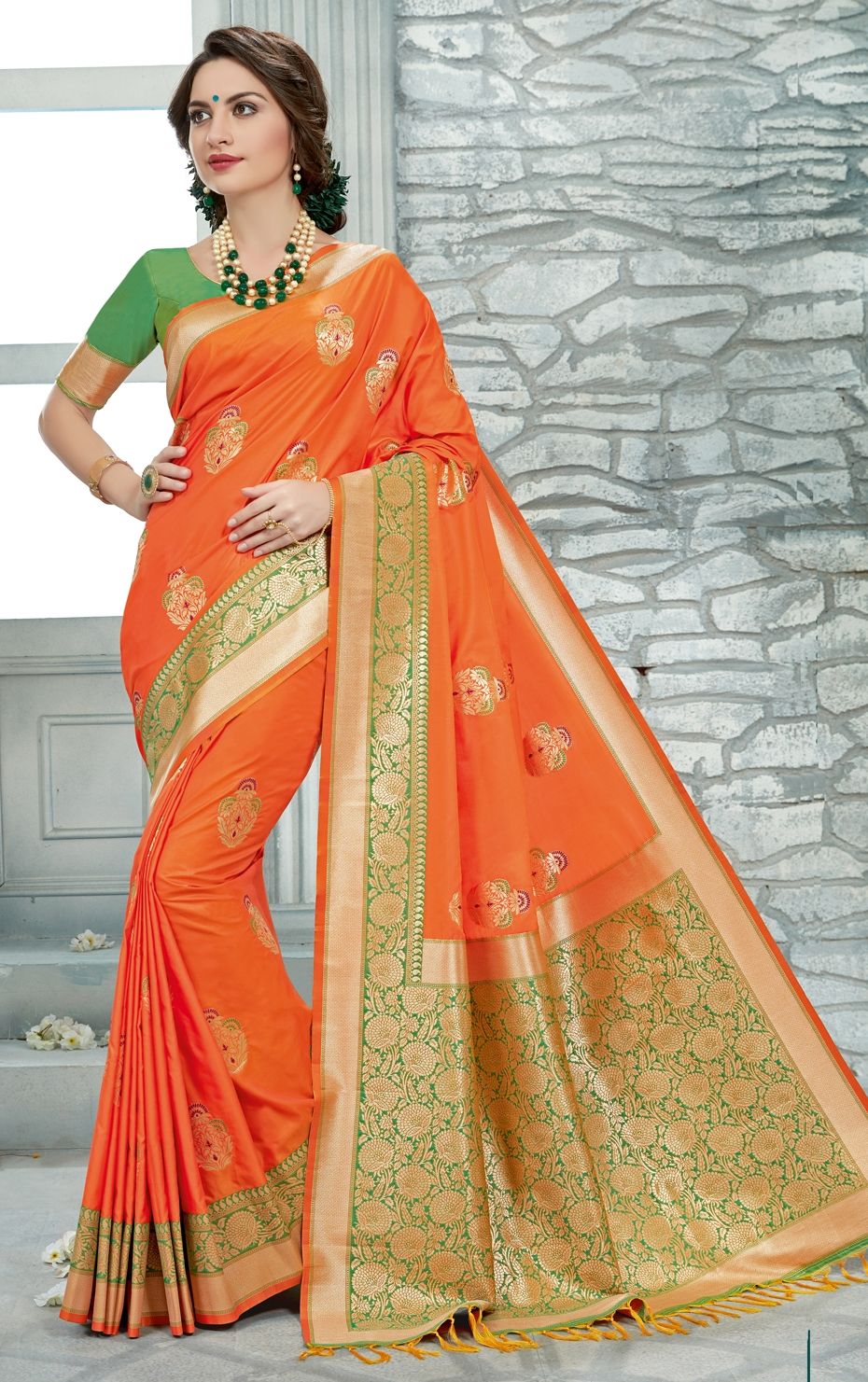 in Orange with Weaving work