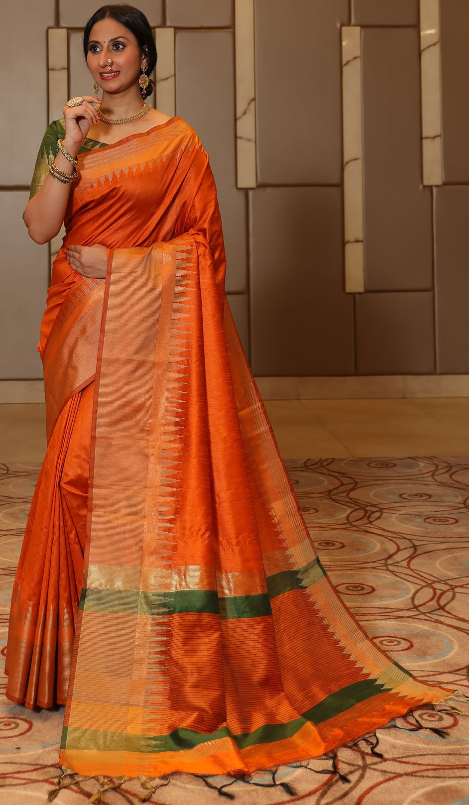 in Orange with Weaving work