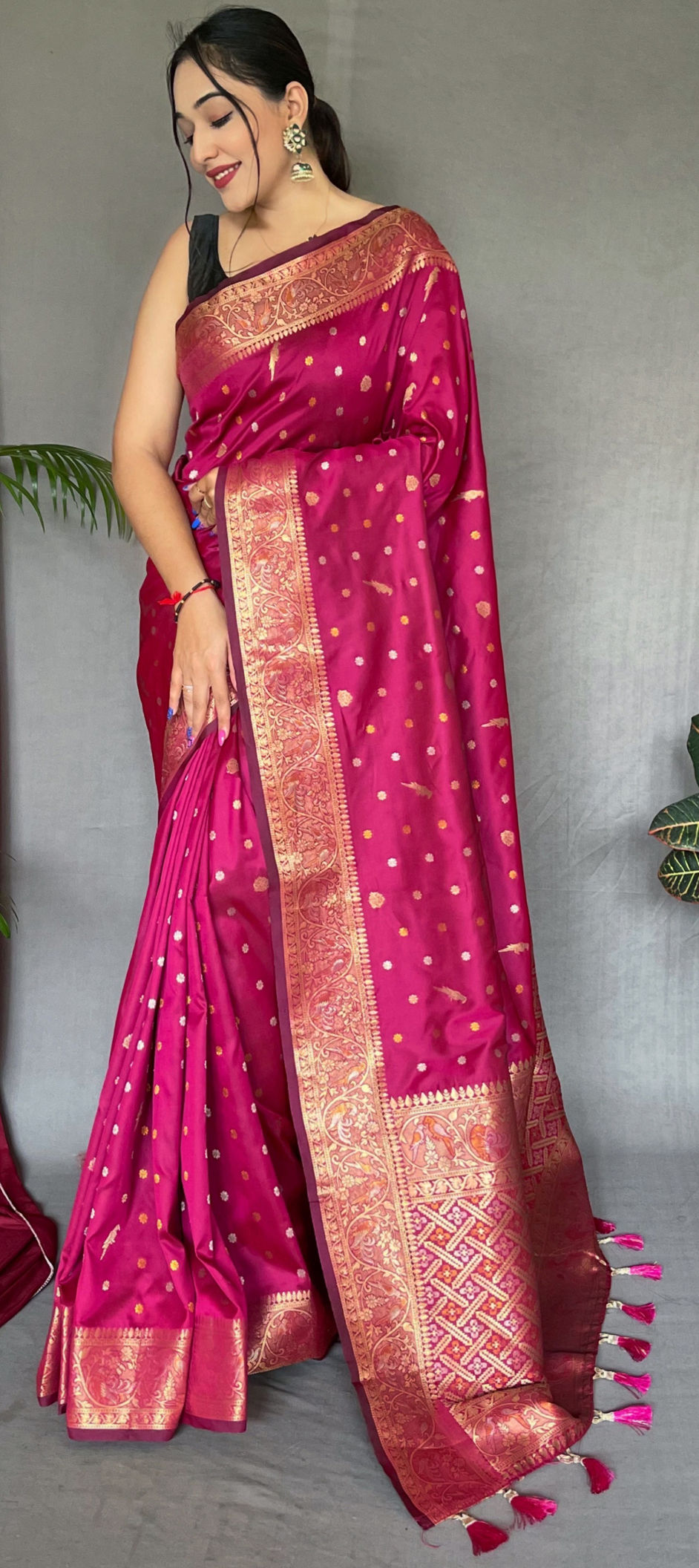 Pink and Majenta color Saree in Organza Silk, Silk fabric with Weaving, Zari work