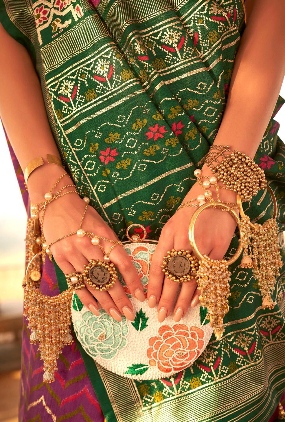 Purple and Violet color Saree in Patola Silk, Silk fabric with Printed work