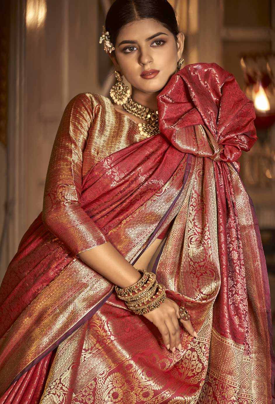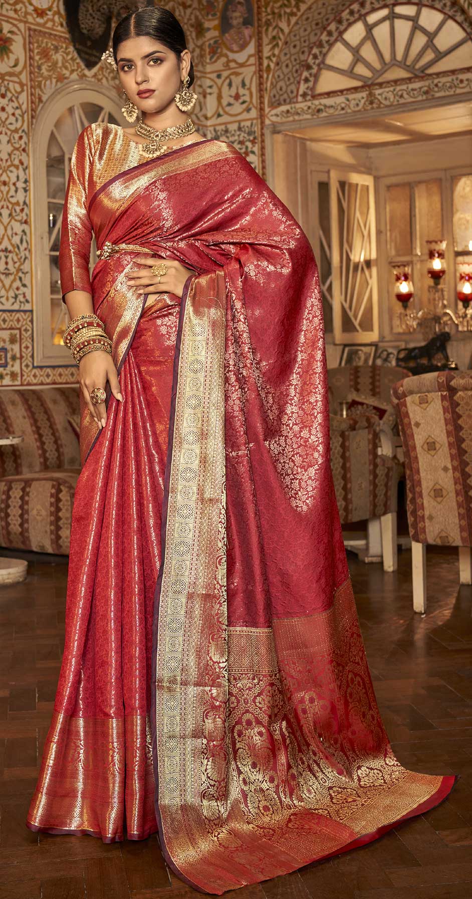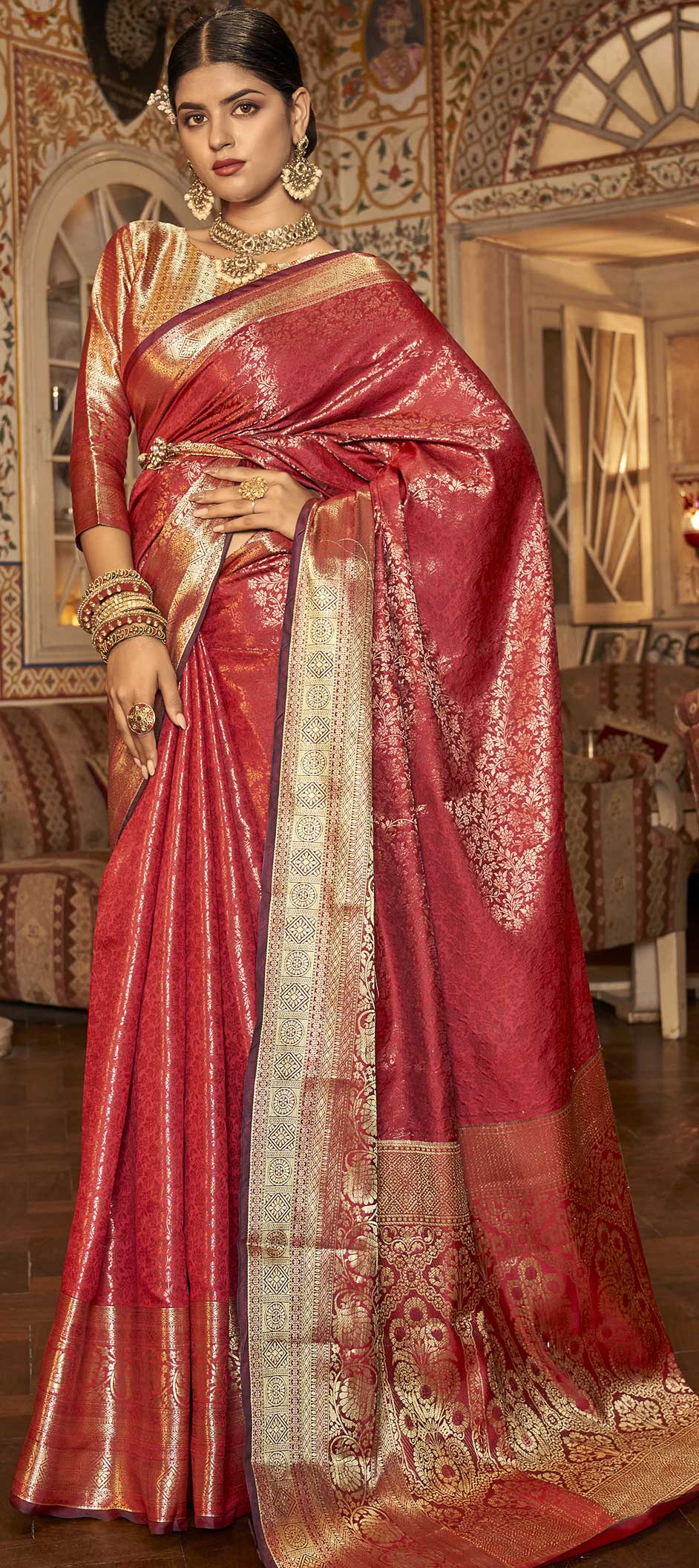 in Red and Maroon with Weaving work